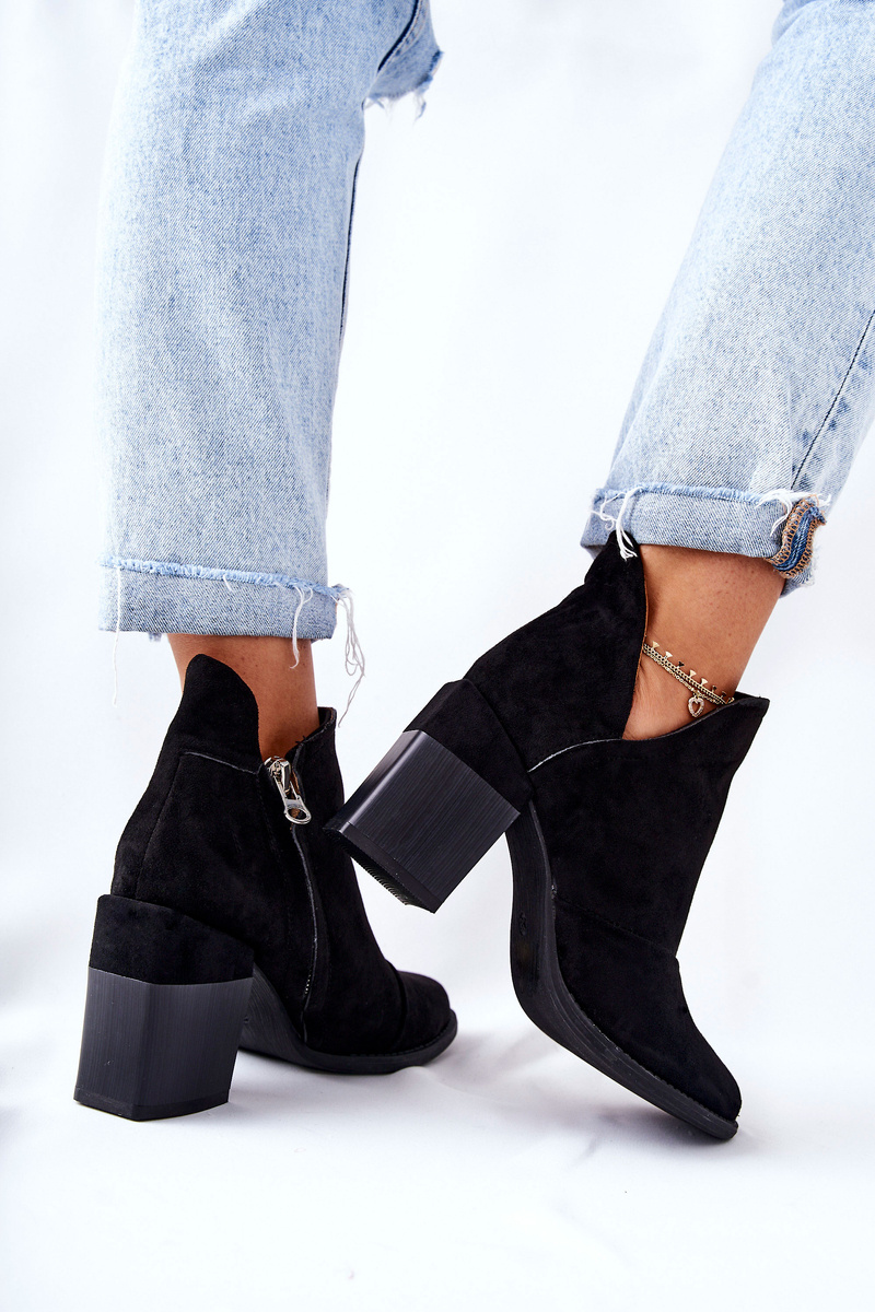 Dámské Kotníkové Boty Na Podpatku Oříznuté Černé Meliori