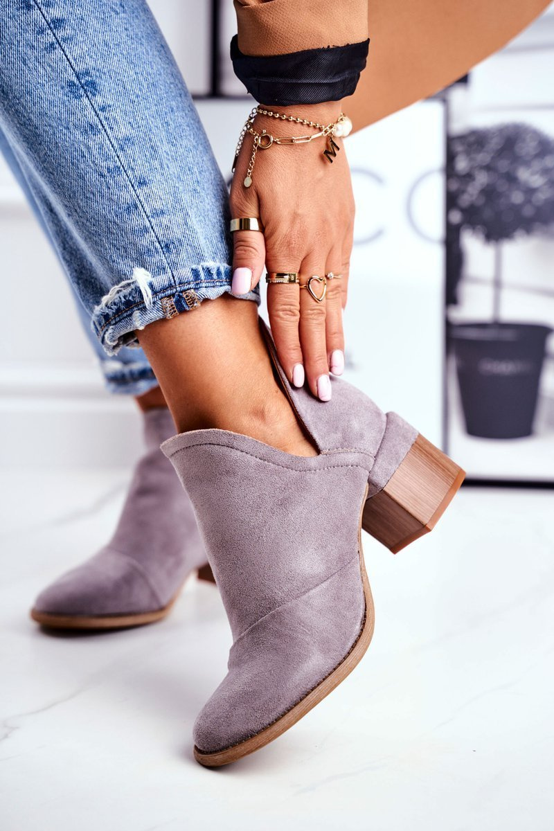 Dámské Kotníkové Boty Na Podpatku Oříznuté Šedé Mini Meliori