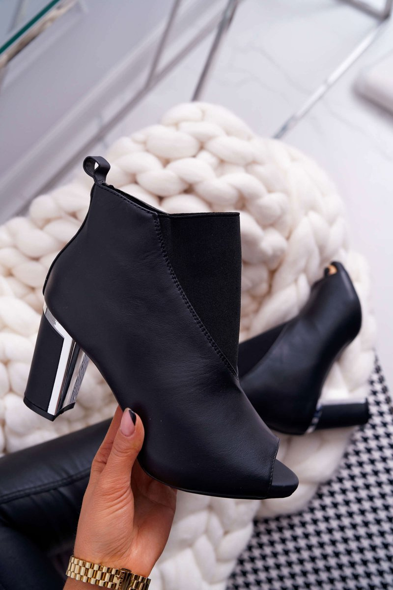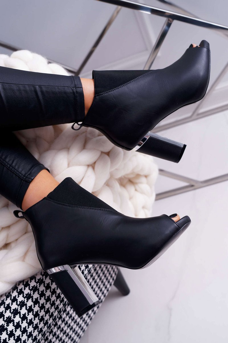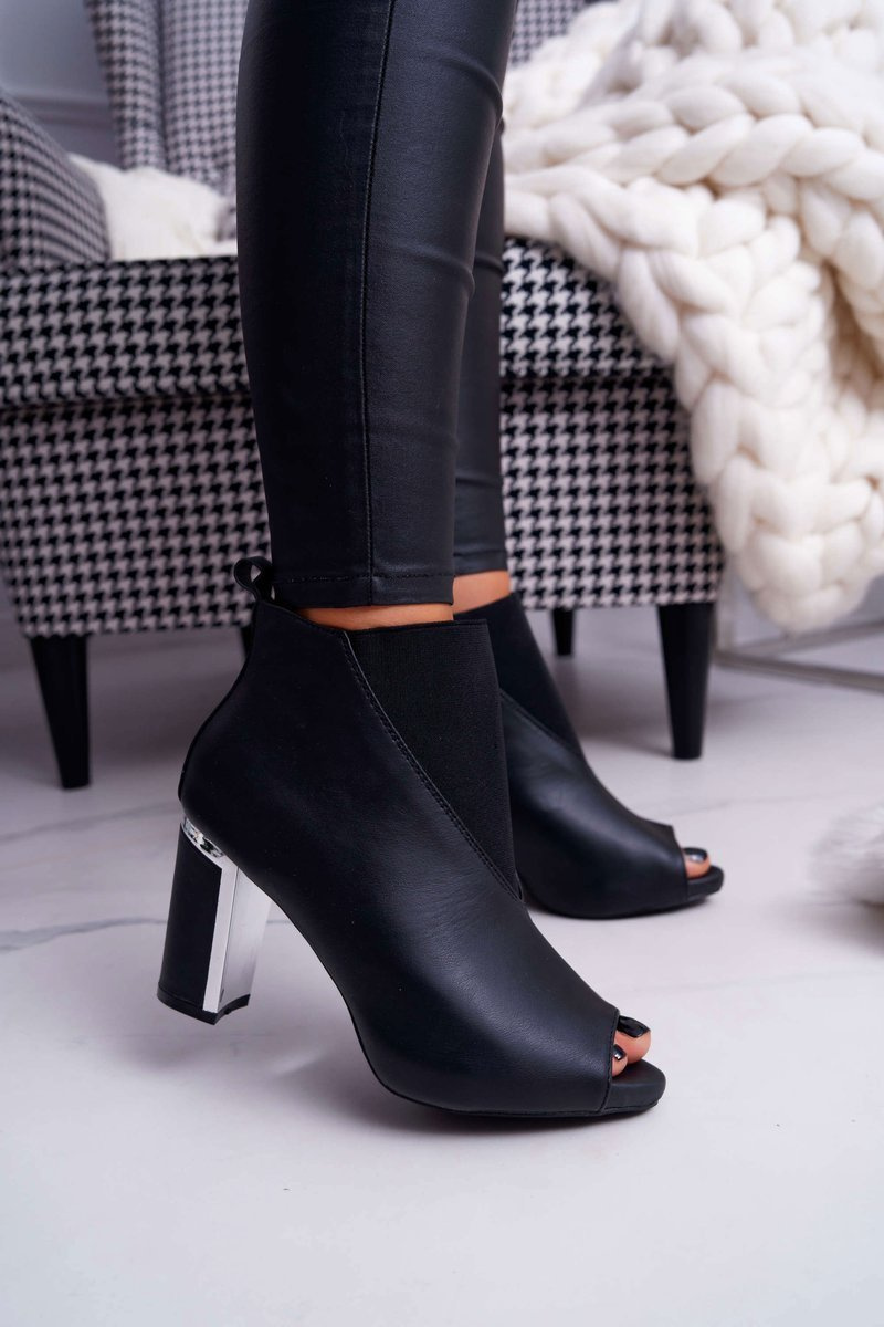 Dámské Kotníkové Boty Na Podpatku Peep Toe černé Germen