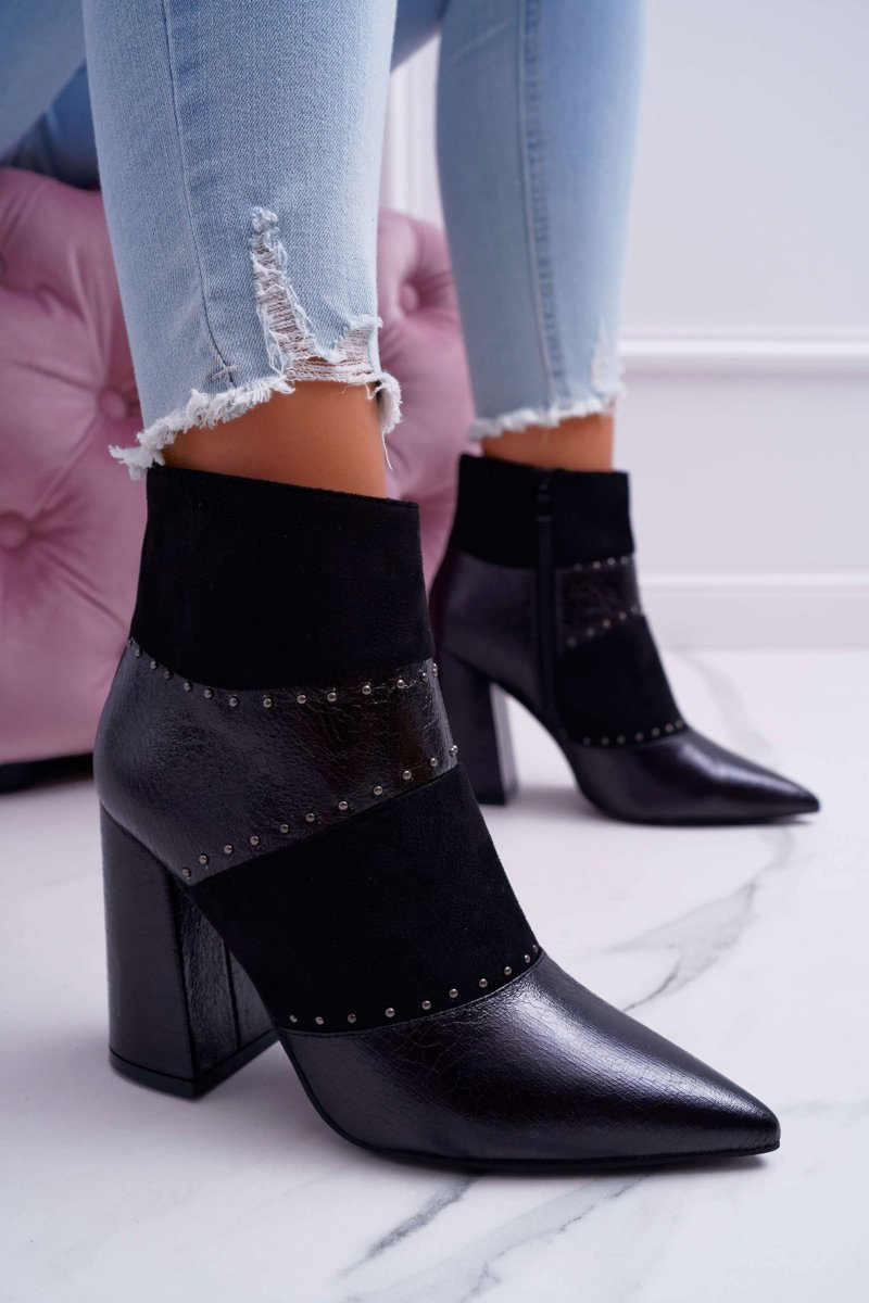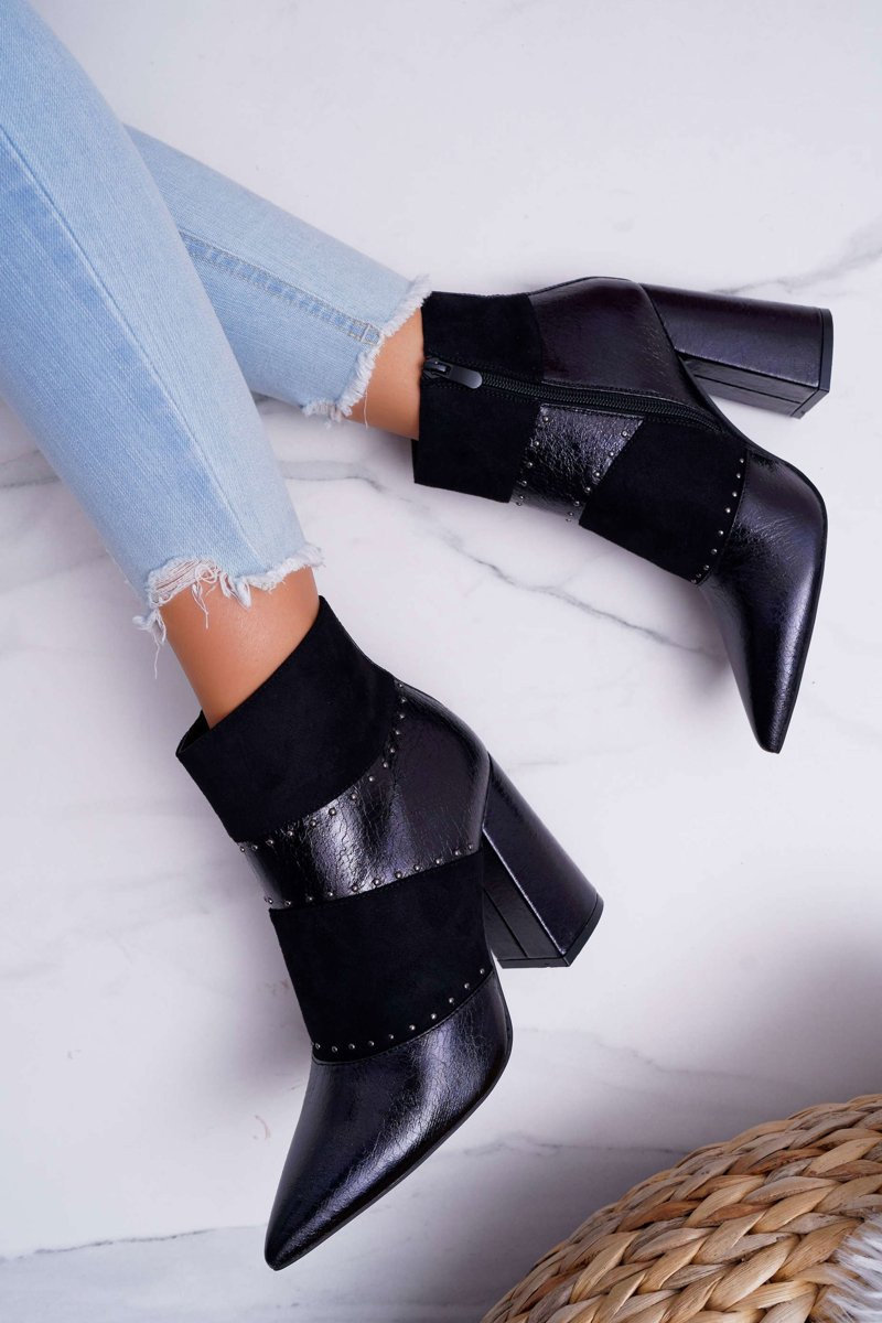 Dámské Kotníkové Boty Na Podpatku s cvočky Černé Yango