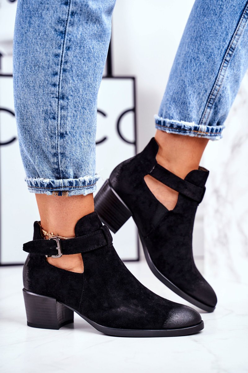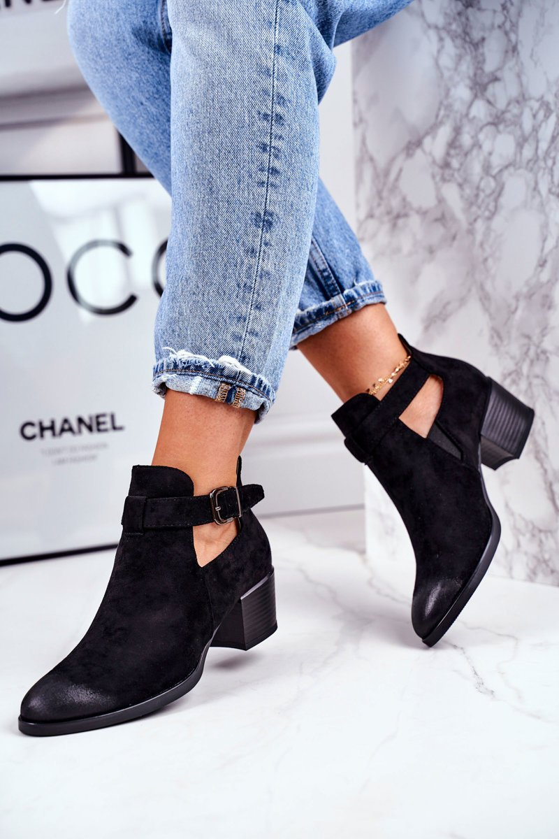 Dámské Kotníkové Boty Na Podpatku S Výřezy Černé Sicily