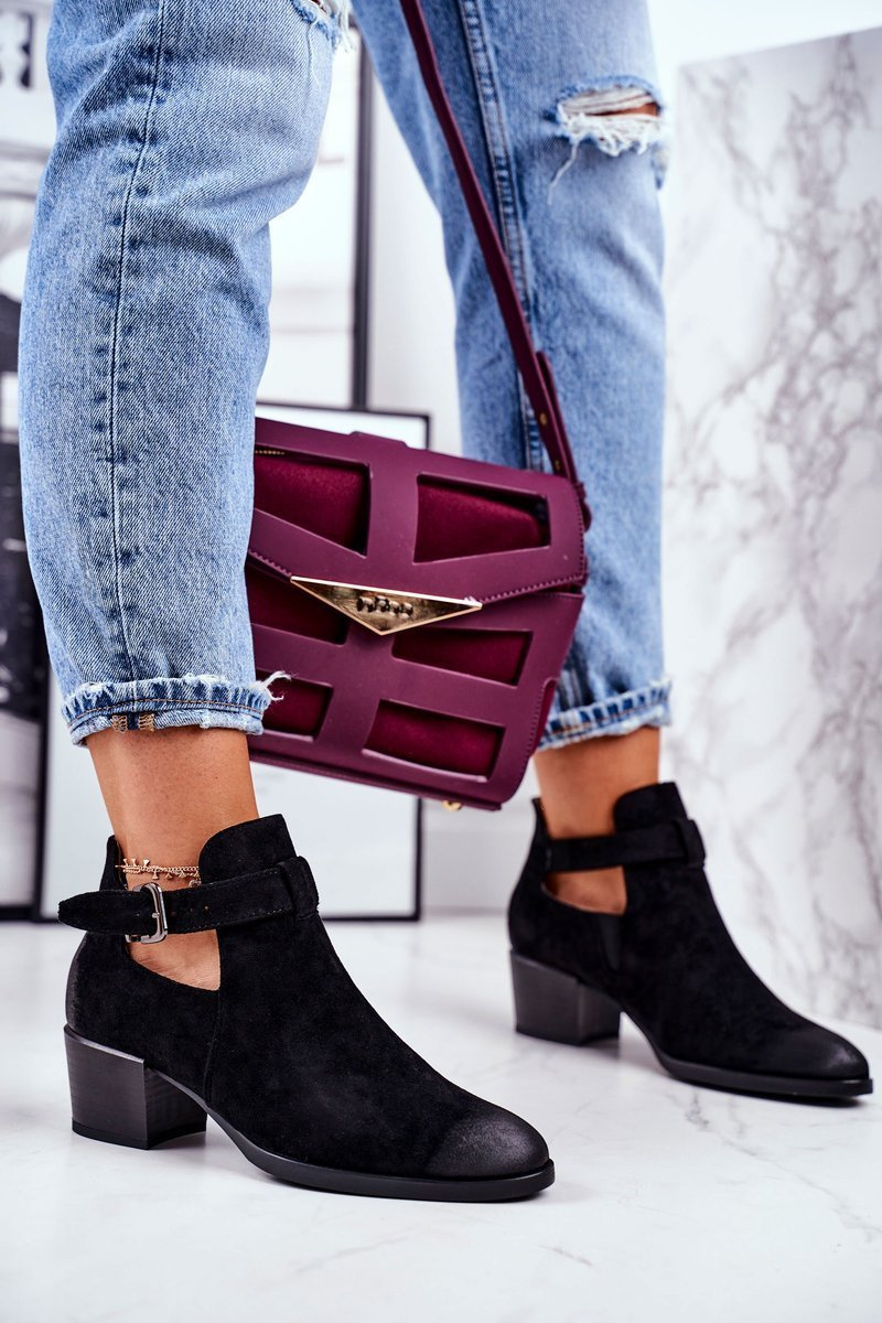 Krásné boty klasického střihu a barvy. Perfektní boty pro jarní a teplé podzimní dny. Křehká spona a výřezy ve výšce kotníku vypadají prostě úžasně! Použití průměrné výšky paty zvedne a zdůrazní naši postavu. Zaručený komfort na každém kroku. Při výběru velikosti použijte tabulku velikostí.