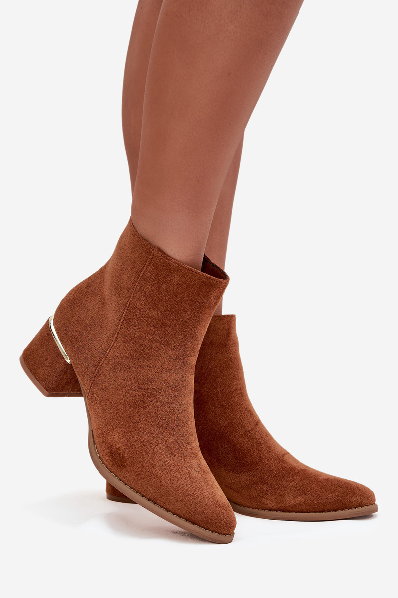 Dámské semišové boty z eko kůže jsou skvělou volbou na chladnější dny. Zapínají se na zip, což je činí pohodlnými na nošení i sundávání. Stylový vzhled jim dodává zlatý prvek u paty. Vnitřek je vyhříván obuvním plstěným materiálem, který zajišťuje komfort a teplo na podzimní a zimní dny. Tento model je ideální pro každodenní i elegantní outfity. Při výběru velikosti se řiďte tabulkou velikostí.