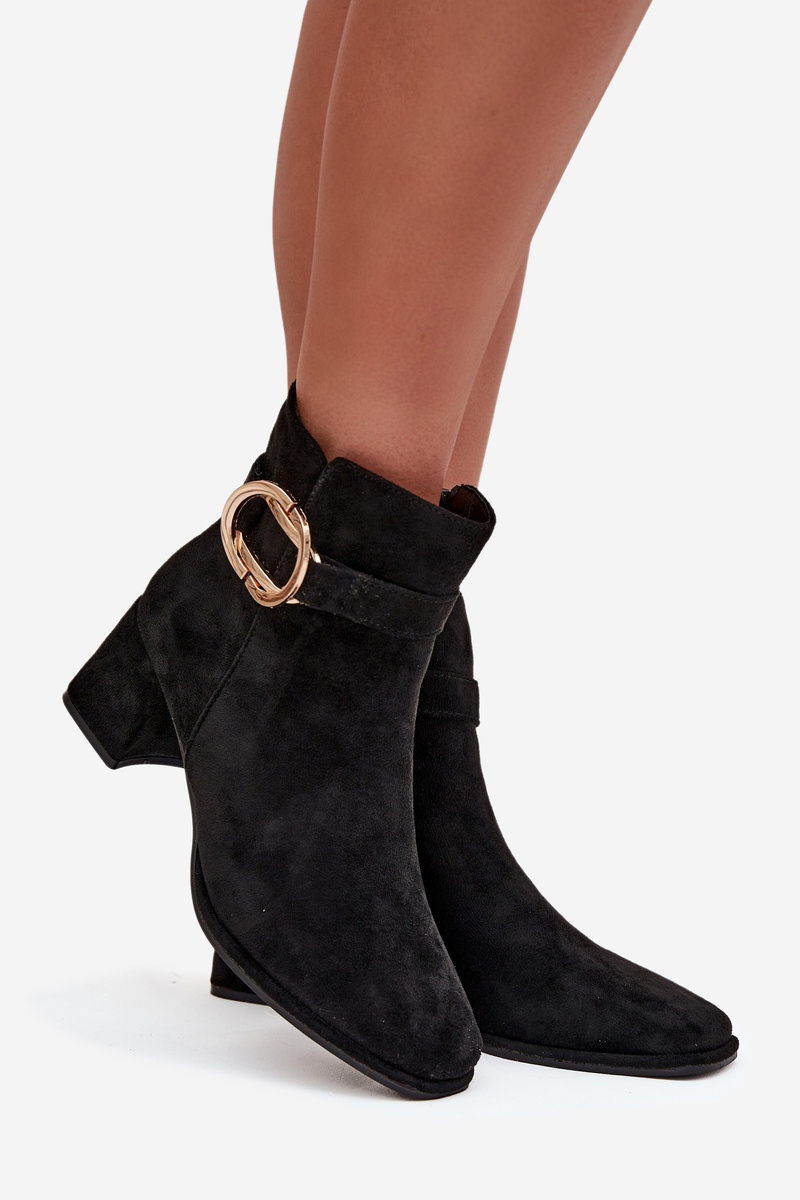 Dámské kotníkové boty na podpatku se zlatým sponou černé Calissa