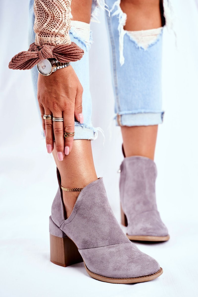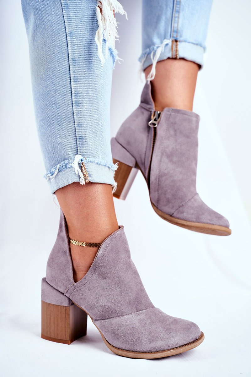 Dámské Kotníkové Boty Na Podpatku Šedé Oříznuté Meliori