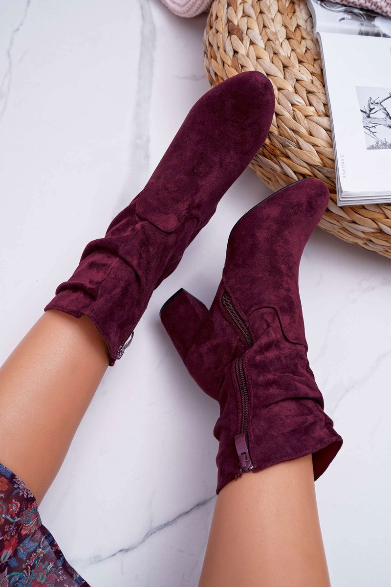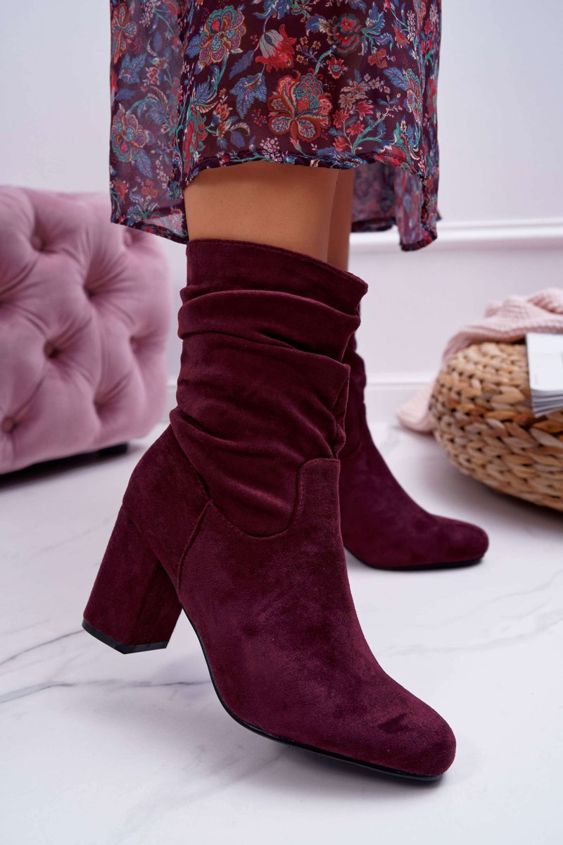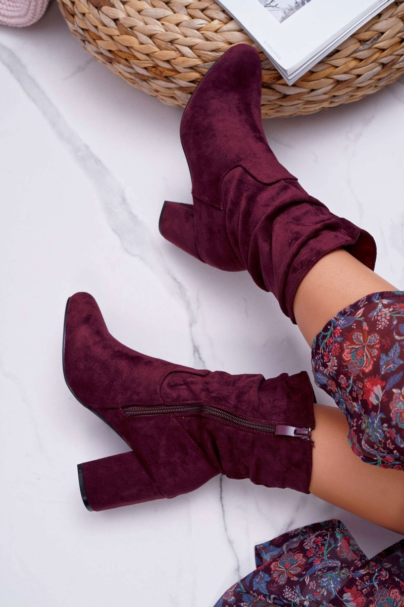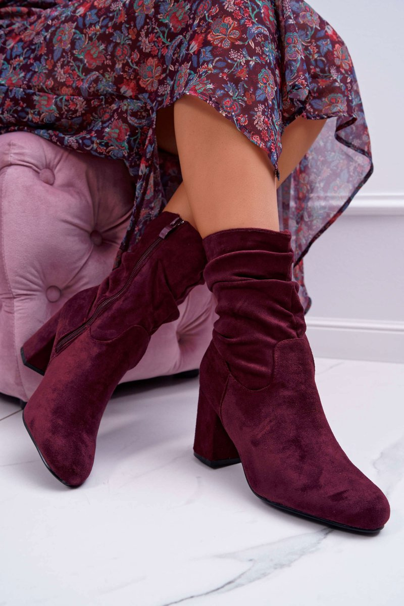 Dámské Kotníkové Boty Na Podpatku Semišové Burgundské Endless