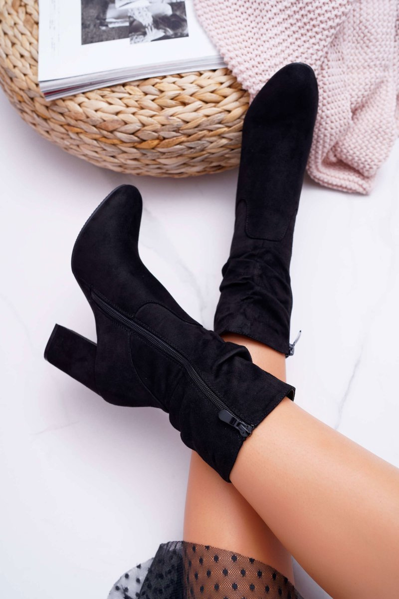 Dámské Kotníkové Boty Na Podpatku Semišové Černé S.Barski 36-14