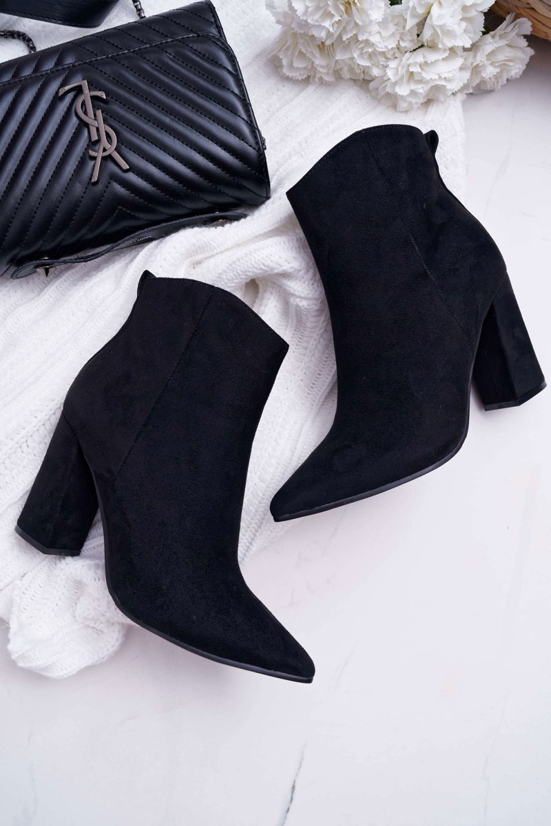 Dámské Kotníkové Boty Na Podpatku Semišové Černé Summe