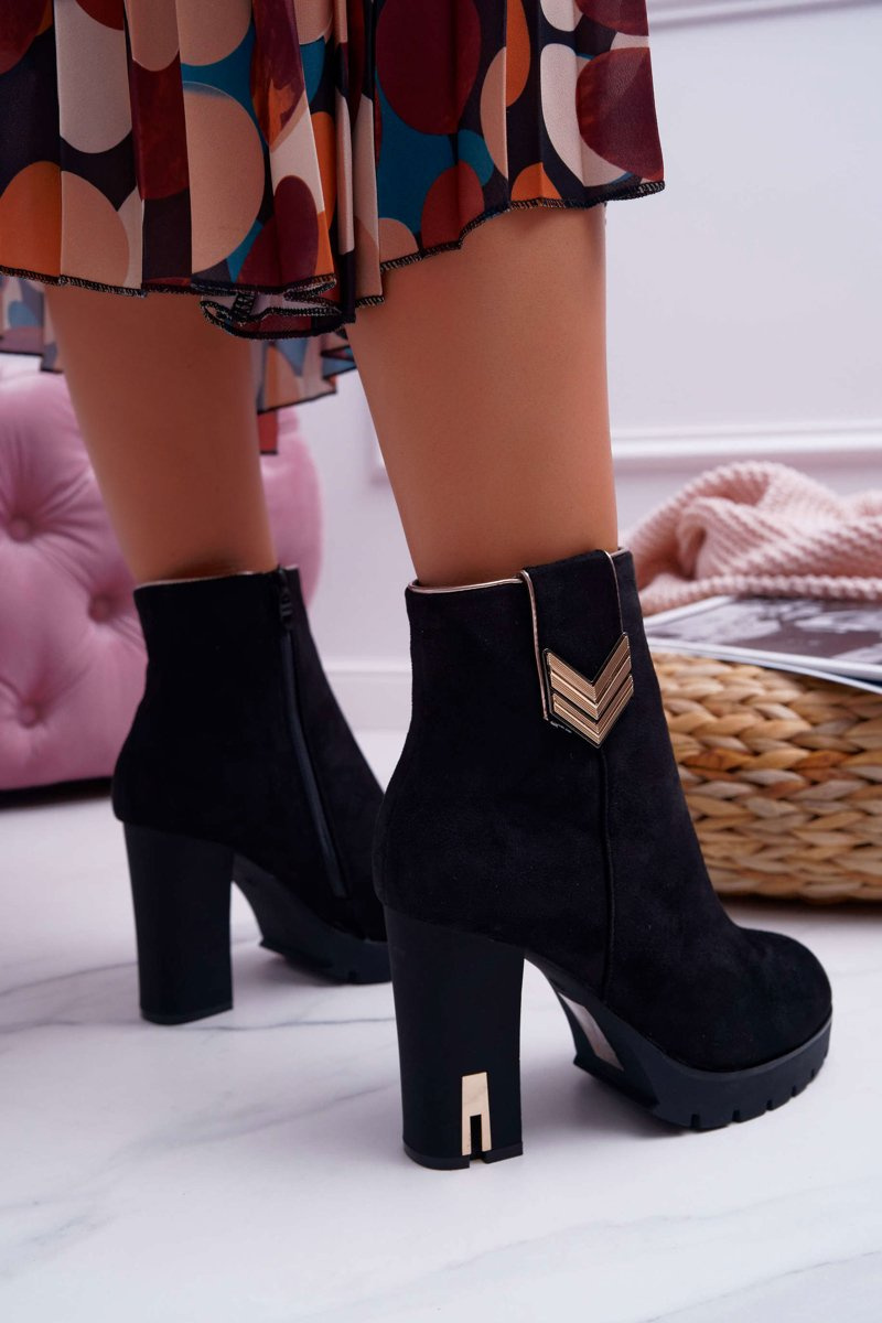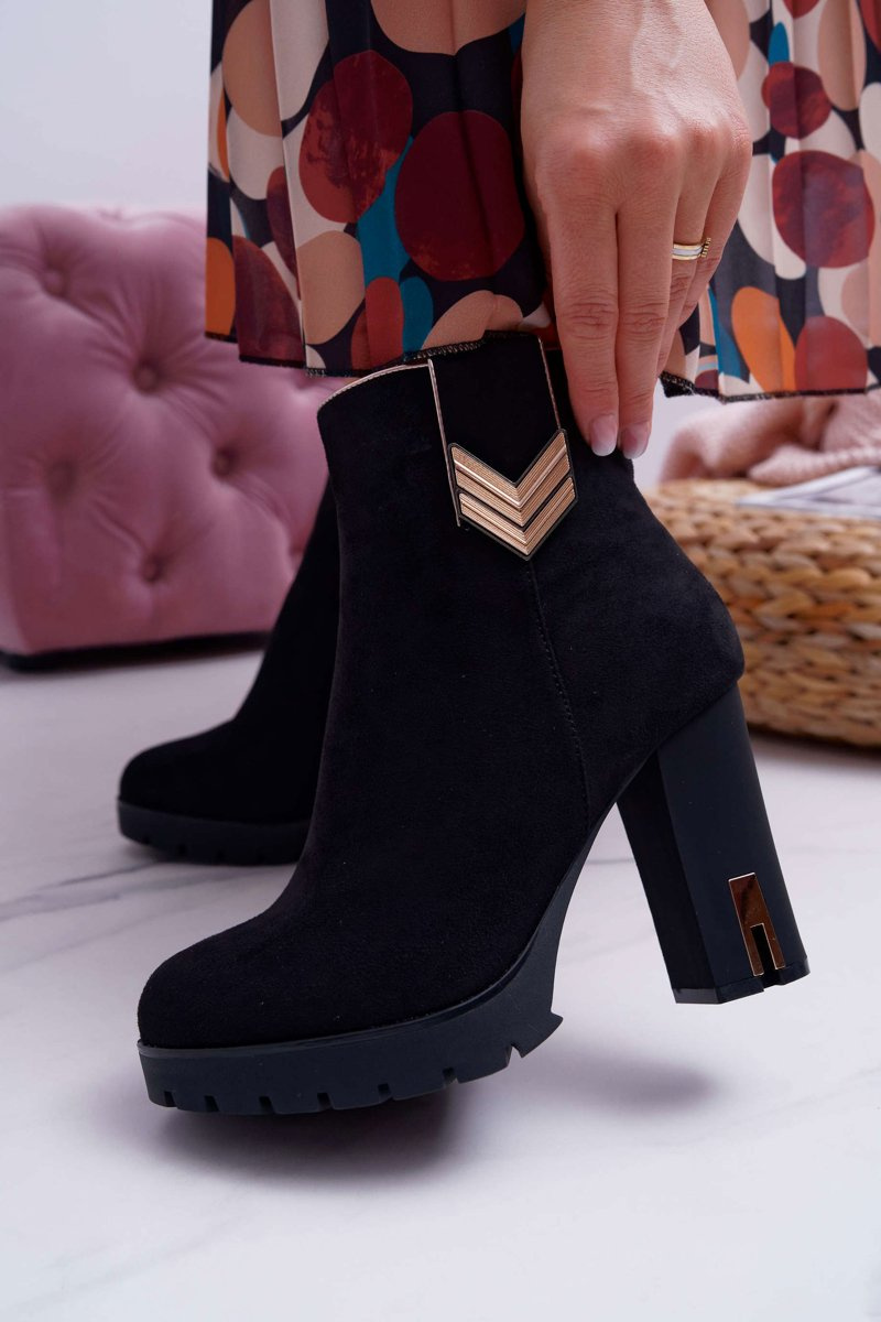 Dámské Kotníkové Boty Na Podpatku Semišové Teplé M319 Černé Midway