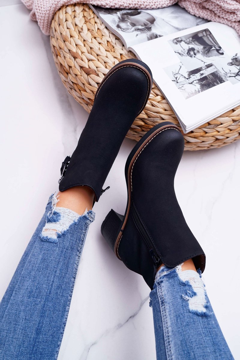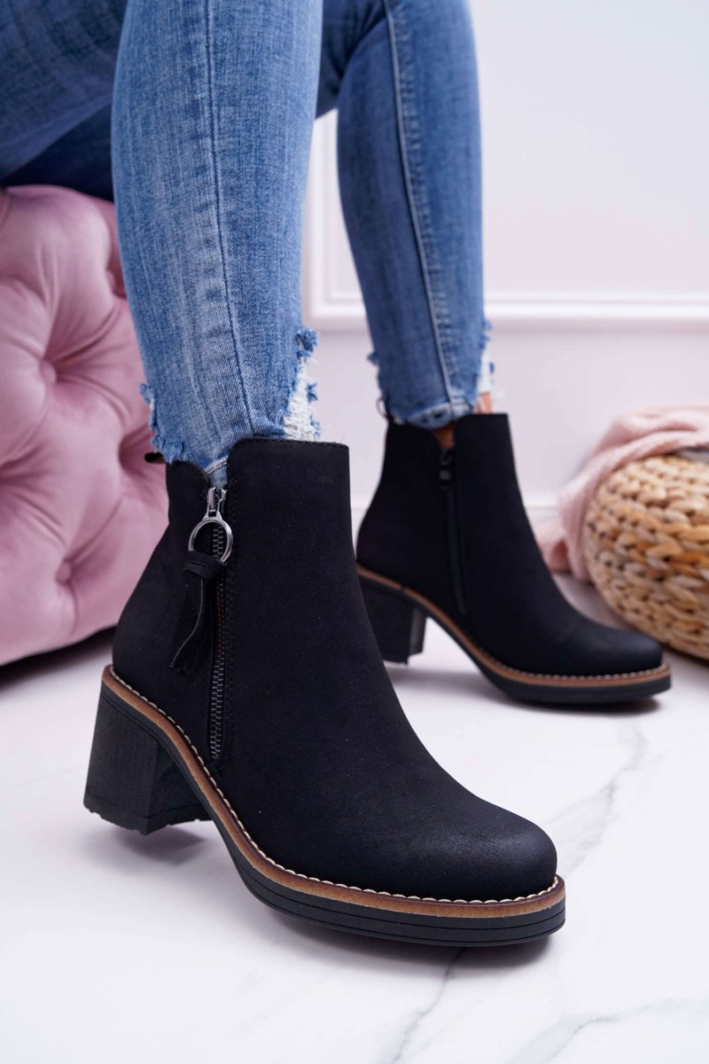 Dámské Kotníkové Boty Na Podpatku zateplené Plstí Černé Delia