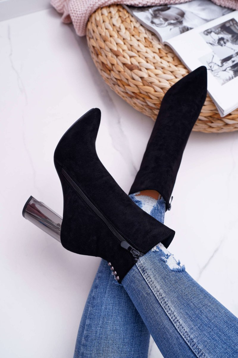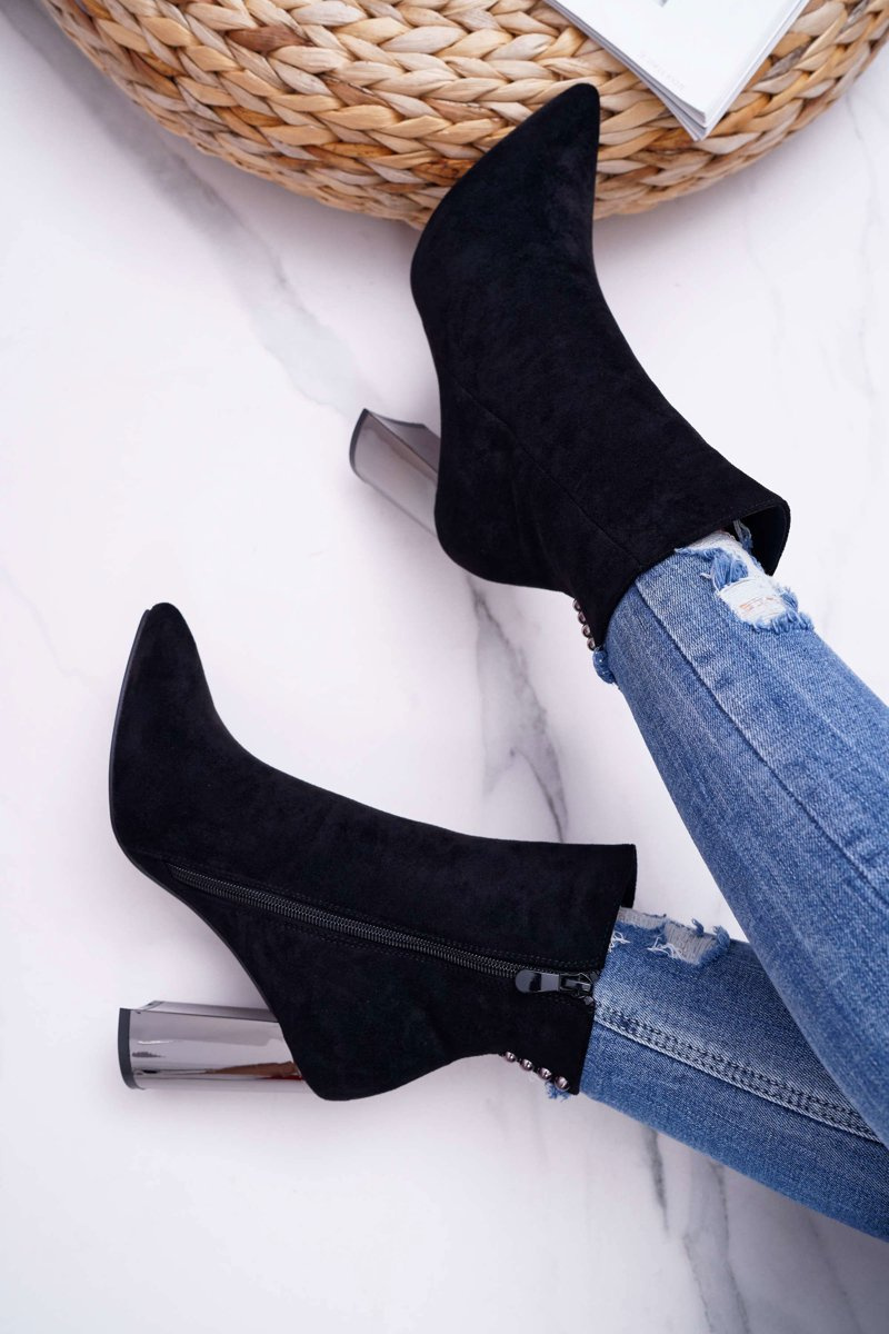 Boty na podpatkuu vyrobené z eko-semiše jistě jsou a budou stylingovým hitem na dlouhou dobu! Díky stříbrnému podpatku nemohou v chybět ve vašem outfitu. Postranní zip usnadňuje nazouvání. Při výběru si zkontrolujte tabulku velikostí.