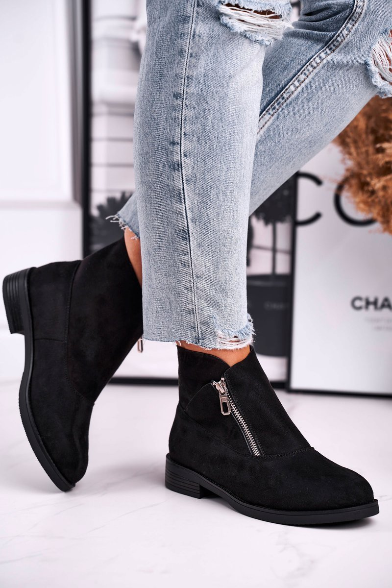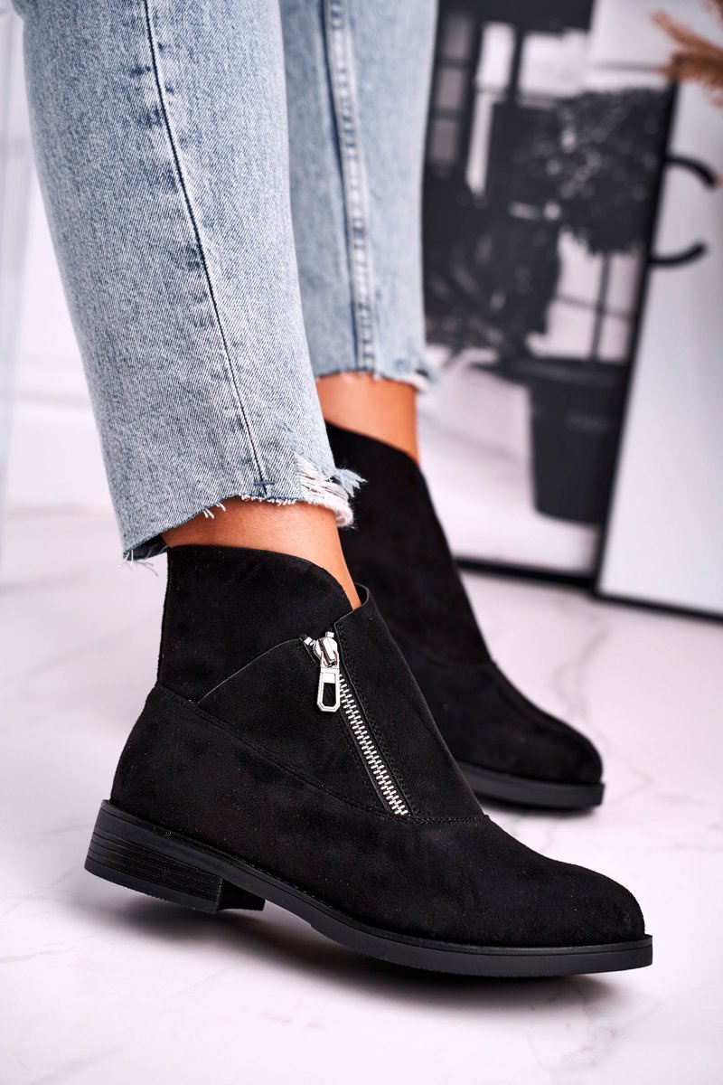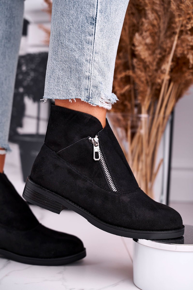 Dámské Kotníkové Boty Se Zipem Semišové Černé Juno