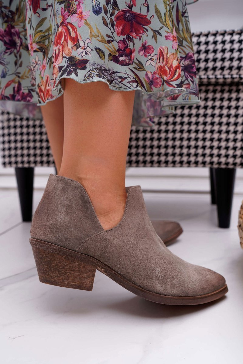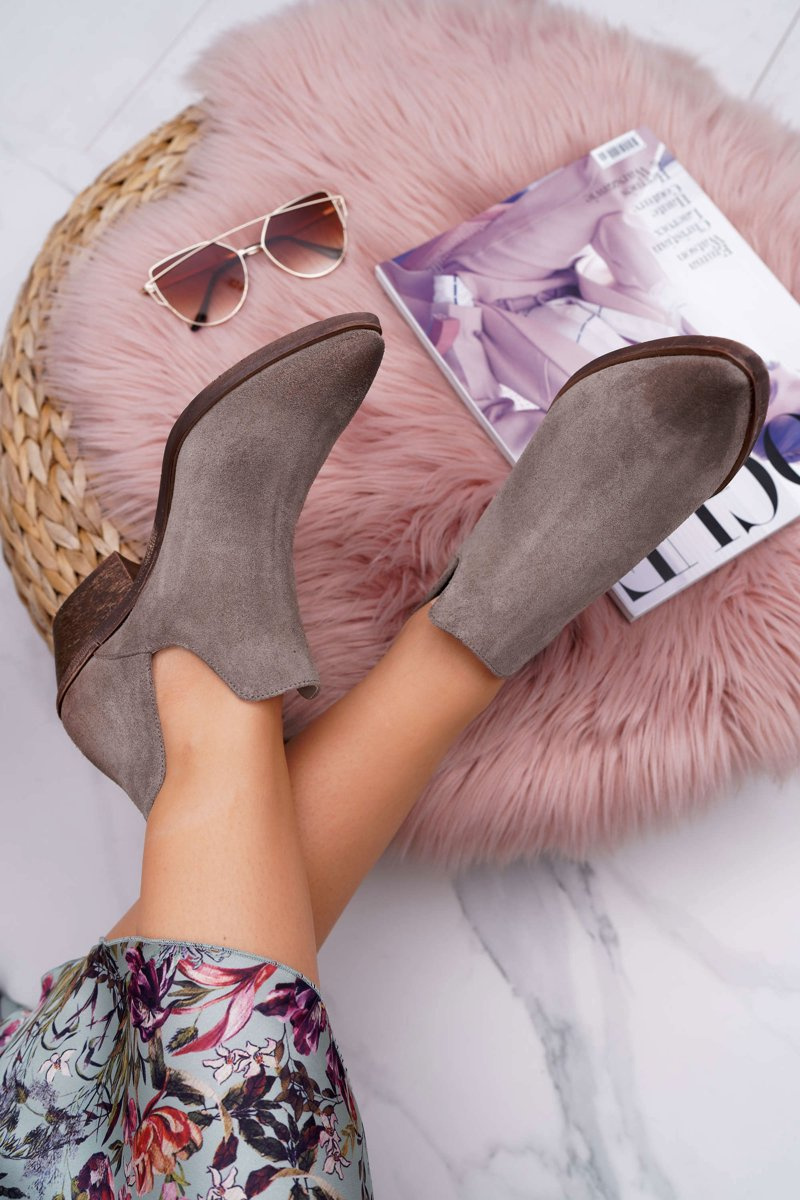 Tyto boty jsou určeny nejen pro chladné dny. Jsou také skvělé při vytváření jarních stylizací. Boty mají jemné kotníkové výřezy a nízký podpatek, který se v této sezóně stal velmi módní. Zcela vyrobené ze semišové kůže. Záruka pohodlí a vysoké kvality. Ideální ke vzdušným šatům i džínovým kalhotám. Při výběru si zkontrolujte tabulku velikostí.