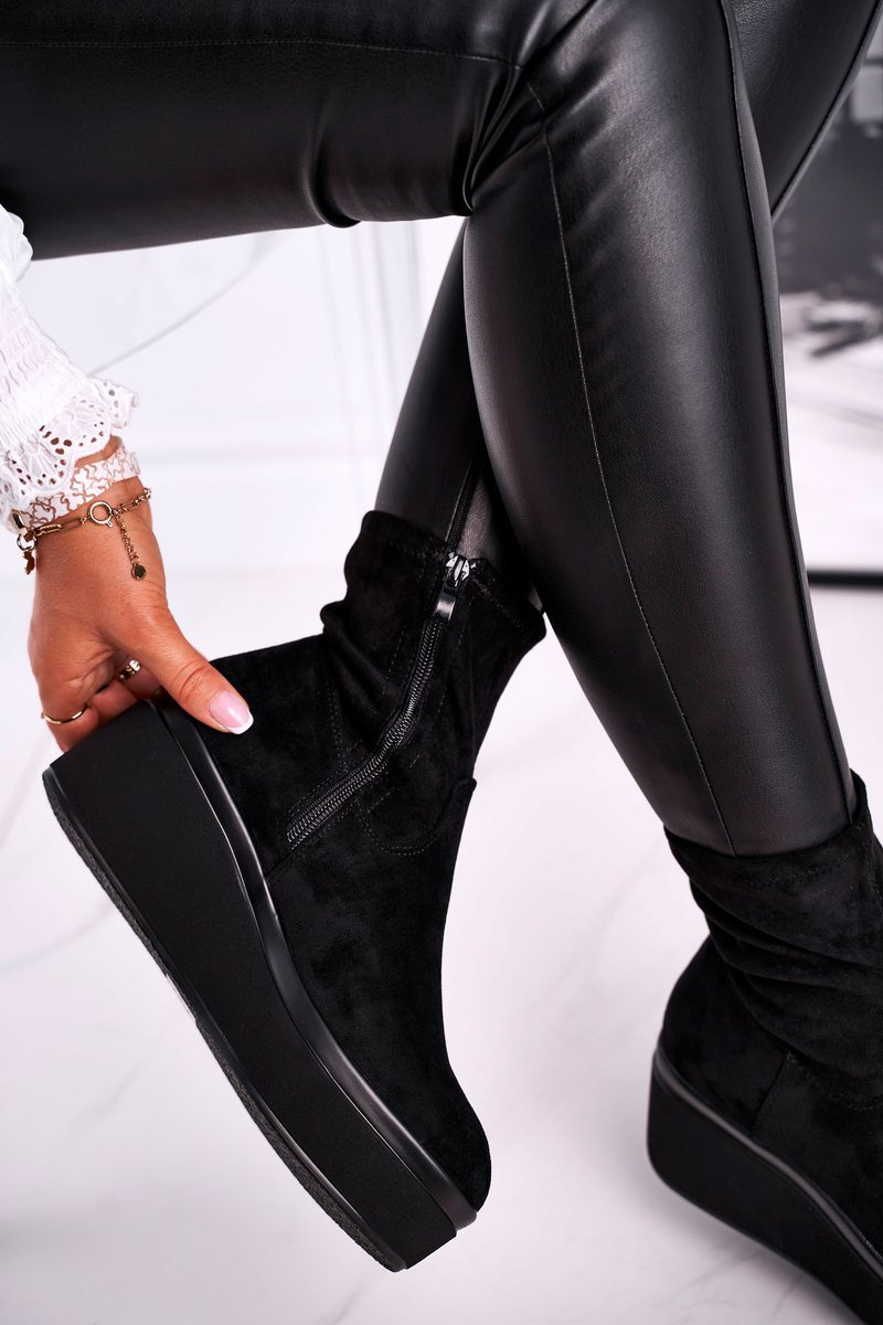 Boty, botičky, boty - bez nich by naše podzimně-zimní oblečení nebylo tak úžasné! Představený model je vyroben z ekologické kamzíkové kůže. Měkký, pružný svršek. Zip na vnitřní straně je praktická aplikace, která nám usnadňuje oblékání. Vnitřek boty byl zateplen hřejivou a na dotek příjemnou kožešinou. Jemný klín a plošina jsou zárukou pohodlí v každé každodenní situaci. Při výběru velikosti použijte tabulku velikostí.