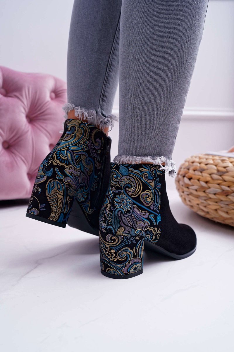 Dámské Kotníkové Boty Sergio Leone Květiny Folk černé Eros2