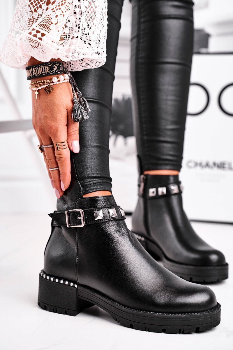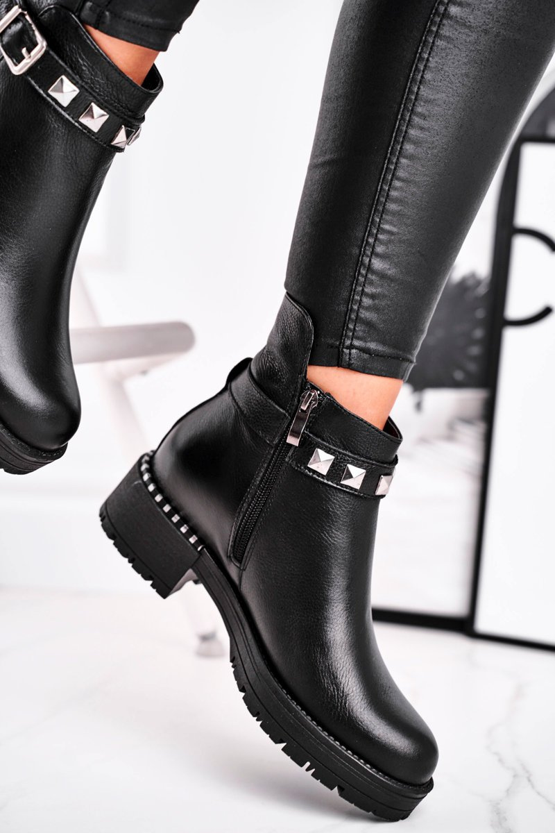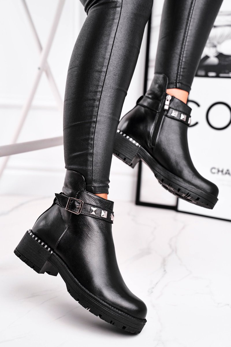 Dámské Kotníkové Boty Teplé Kožené černé Laura Messi 2055