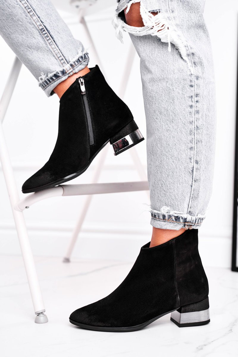 Laura Messi je značka uznávaná a oceňovaná mezi našimi klienty. A to není překvapující. Vysoce kvalitní zpracování a nejmódnější design. Svršek je vyroben z přírodní kůže nubuk. Vnitřek bot je potažen dekou na boty, která zaručí teplo. Bude snazší obléknout si zip našitý na boku. Trendy plochý podpatek se stříbrnou vložkou vypadá úžasně. Při výběru velikosti použijte tabulku velikostí.