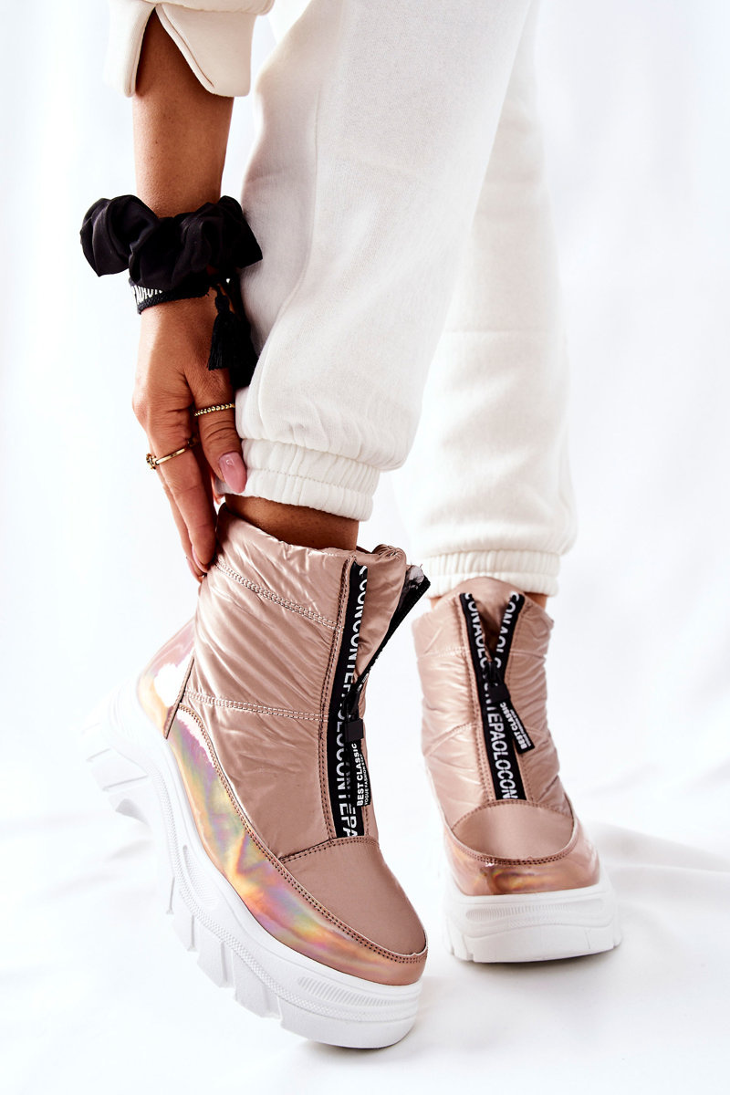 Dámské boty z ekologické kůže a textilního materiálu. Zapínání na zip v přední části svršku. Zahřáté dekou na boty.