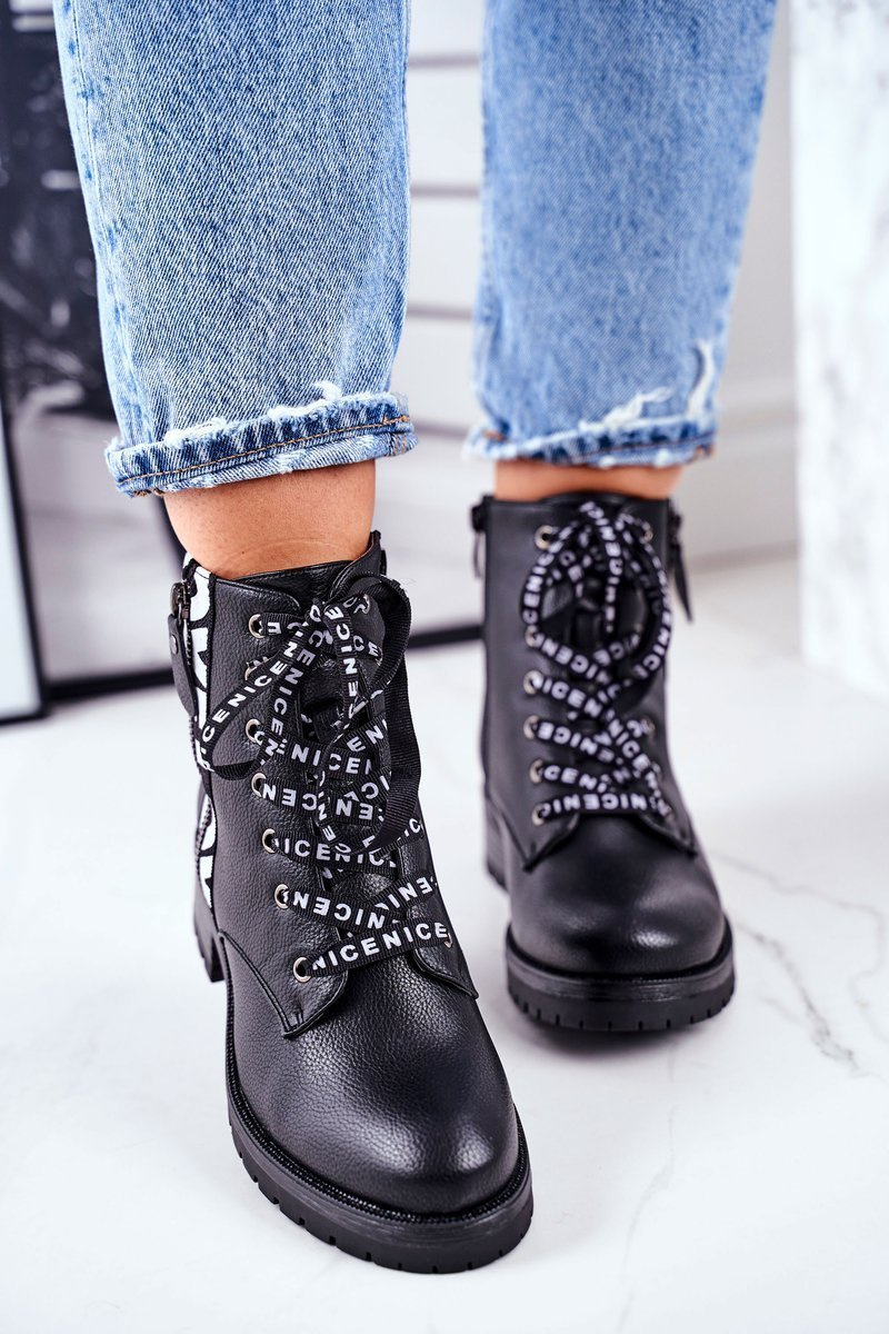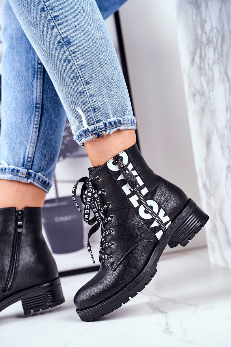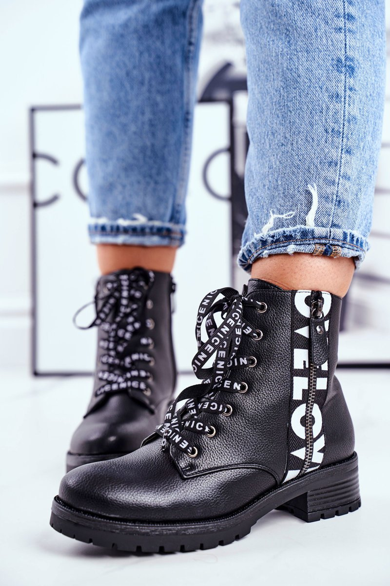 Ano, vidíte dobře! Tyto nádherné turistické boty mohou být vaše! Svršek je vyroben z ekologické kůže. Lapače zdobené zipem se slovem LOVE, druhý zip usnadní navlékání. Černé tkaničky s nápisem NICE jsou dokonalým zvýrazněním těch divů, kterým určitě neodoláte <3 Při výběru velikosti postupujte podle tabulky velikostí.
