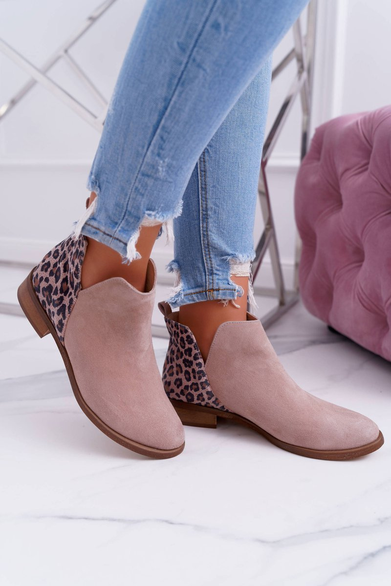 Kotníkové boty nejsou jen boty za chladných dnů. Jsou také skvělé při vytváření jarních stylizací. Boty mají jemné výřezy ve výšce kotníků. Plochý pata a leopardový vzorek, který se v této sezoně stal velmi módní. Boty vyrobené zcela ze semišové kůže. Polský výrobek, který nám zaručuje komfort a vysokou kvalitu zpracování. Ideální pro vzdušné šaty a džínové kalhoty. Při výběru velikosti doporučujeme velikost tabulky.