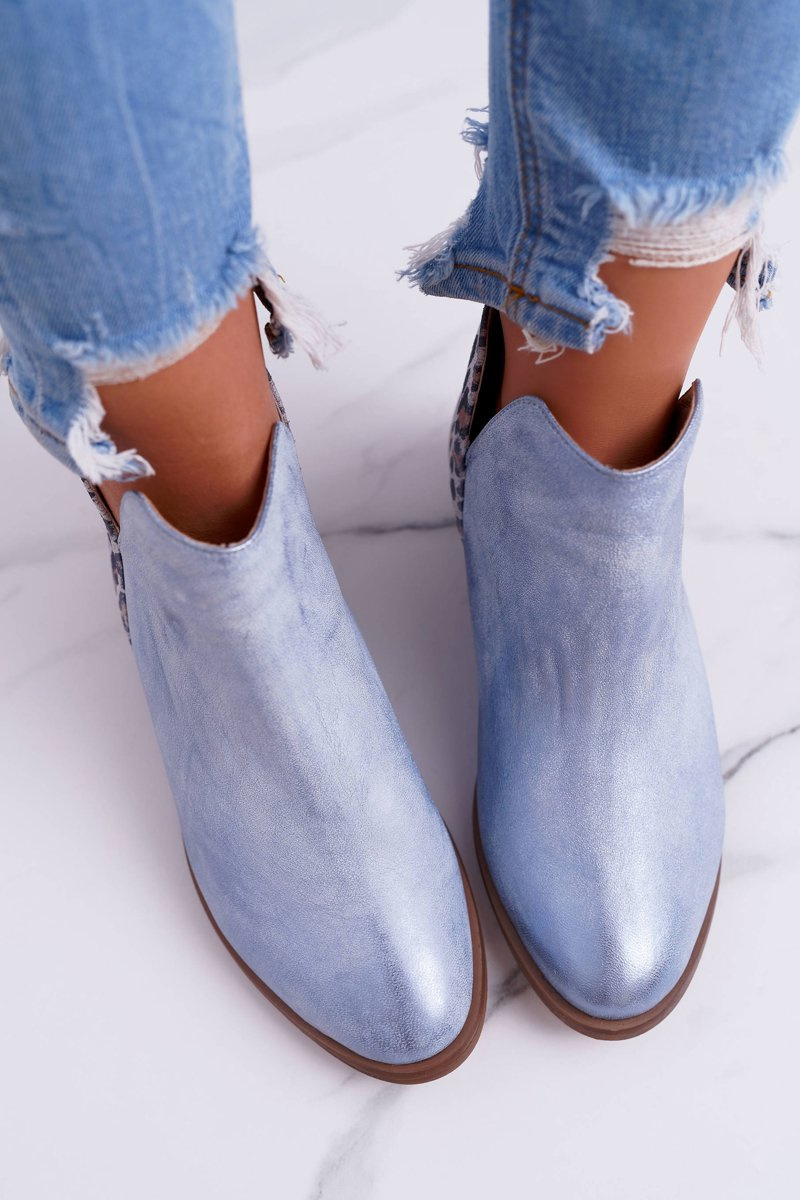 Dámské Kotníkové Ploché Boty Jarní Kožené Modré Madness