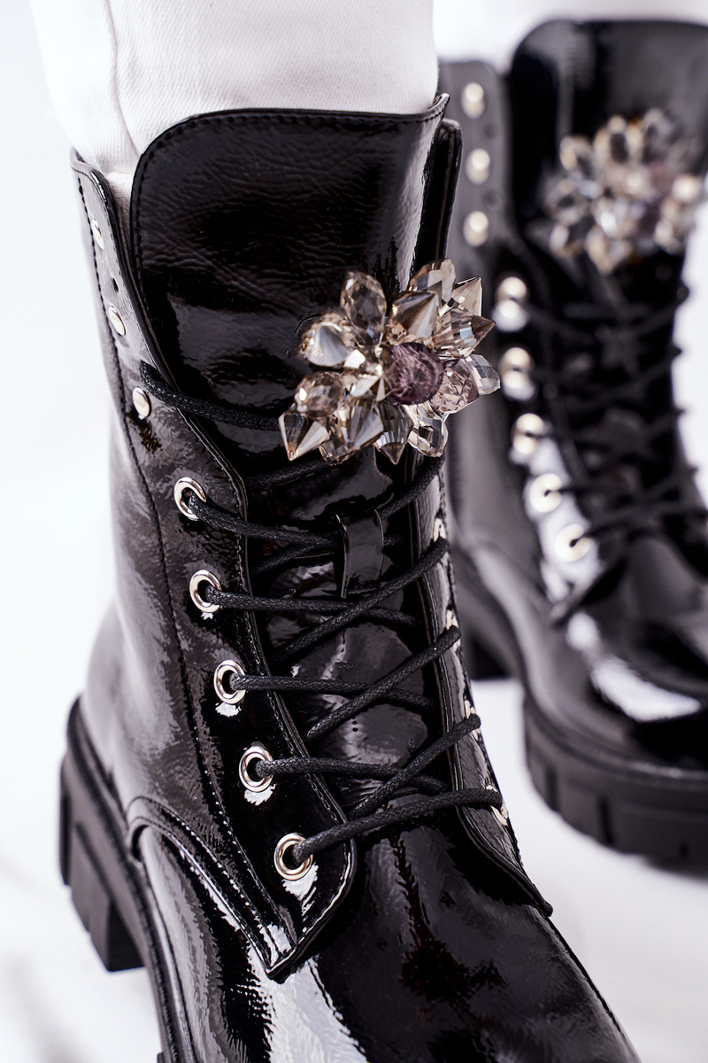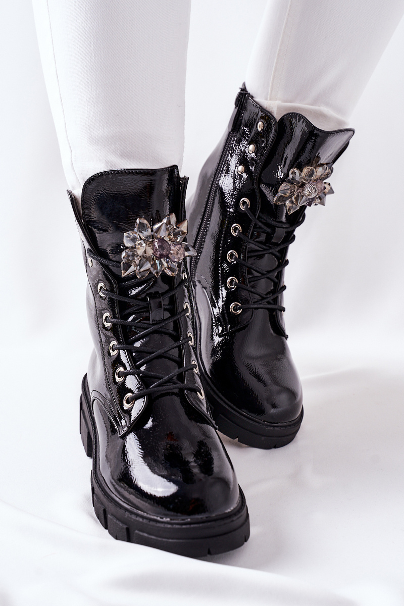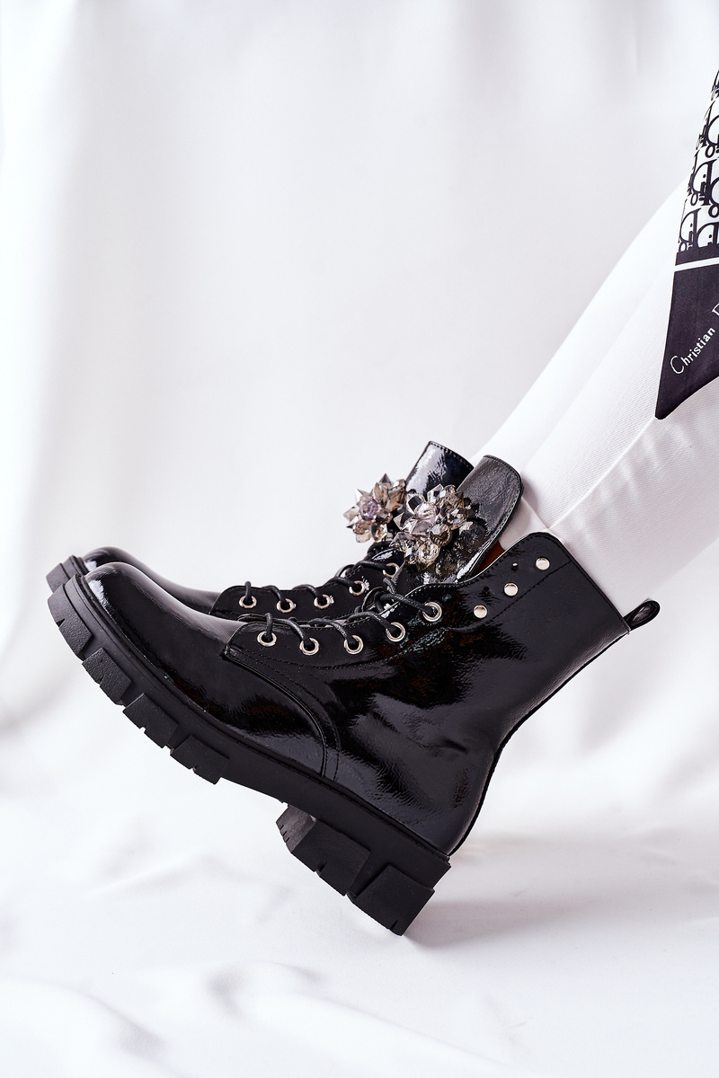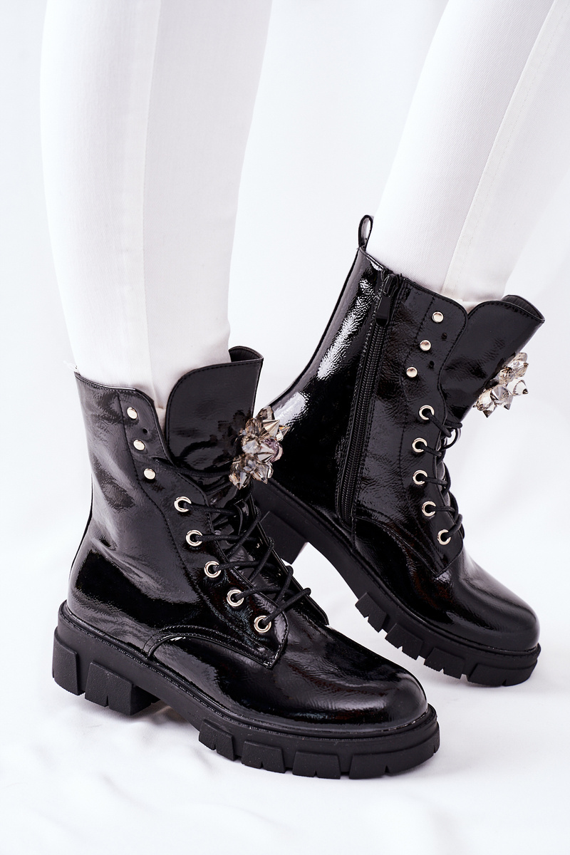 Tyto nádherné turistické boty mohou být vaše! Turistické boty vyrobené z lakované ekologické kůže. Vnitřek a stélka jsou podšity dekou na boty. Při výběru velikosti postupujte podle tabulky velikostí.