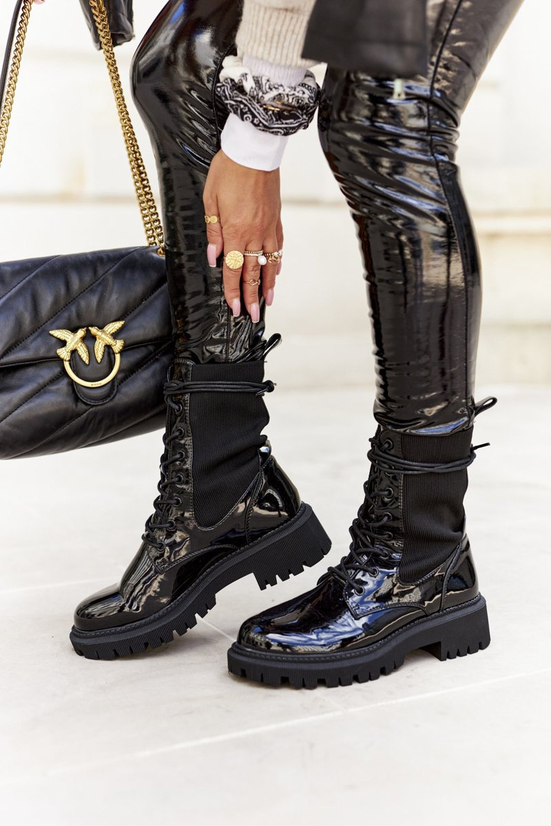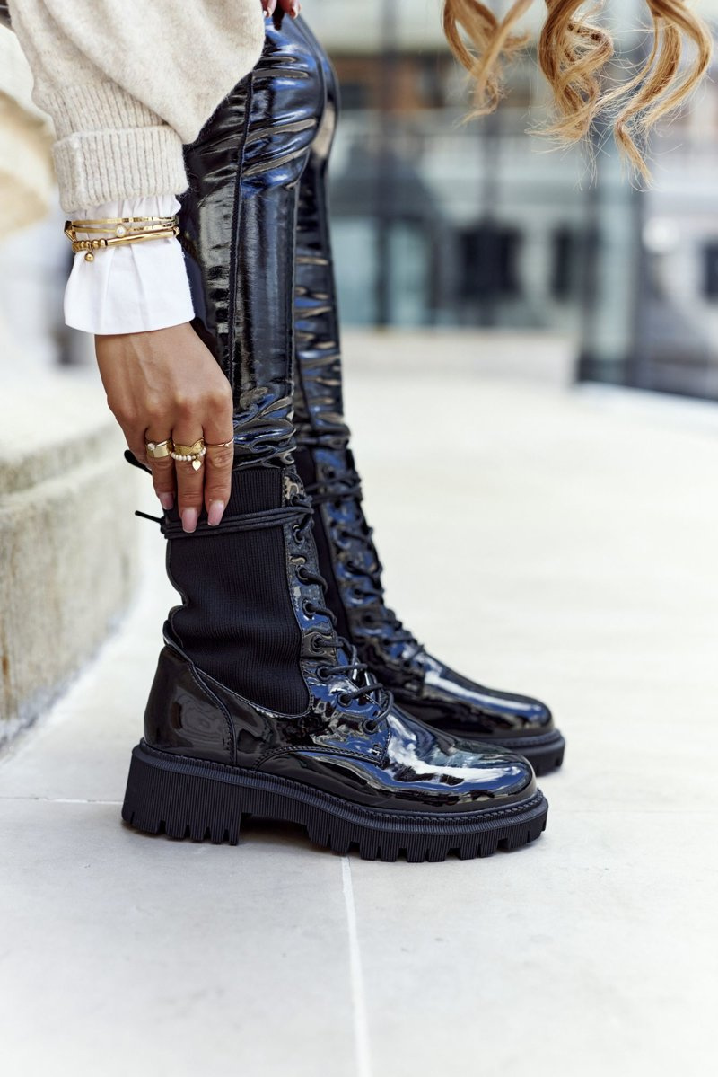 Moderní boty, které jsou hitem letošní sezóny! Svršek je vyroben z lakované ekologické kůže. Vysoký, pružný svršek s gumičkami všitými do boků zajišťuje dokonalé přizpůsobení. Klasický šněrovací model. Při výběru velikosti se prosím řiďte tabulkou velikostí.