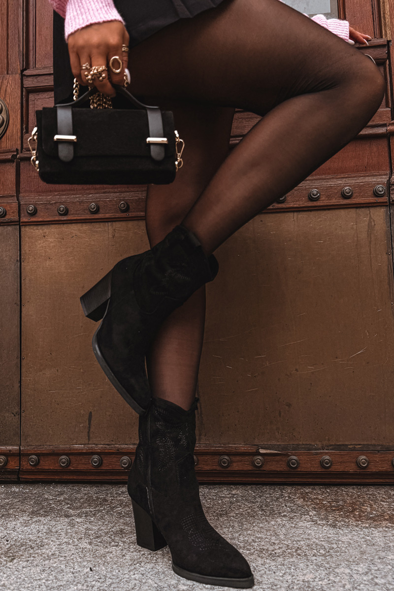 Dámské kovbojky na podpatku Eko semiš Černé Carissa
