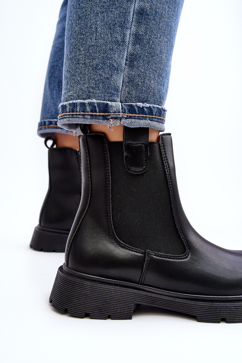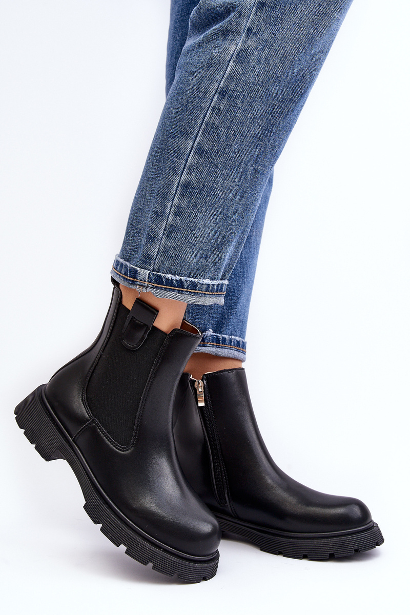 Dámské kotníkové boty s nízkým kotníkovým límcem. Vyrobené z ekokože. Umístěné na plochém podpatku a tlusté podrážce. Na límci elastické vložky. Zaoblené špičky. Model se zapíná po straně na zip. Zadní část je zpevněná. Tento klasický střih si snadno sladíte s každým podzimním outfitem! Při výběru velikosti se řiďte tabulkou velikostí.