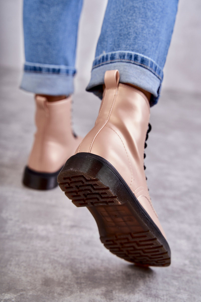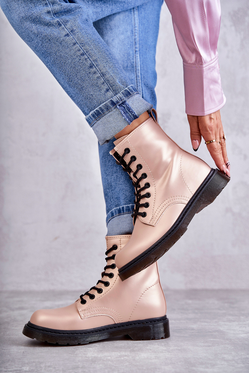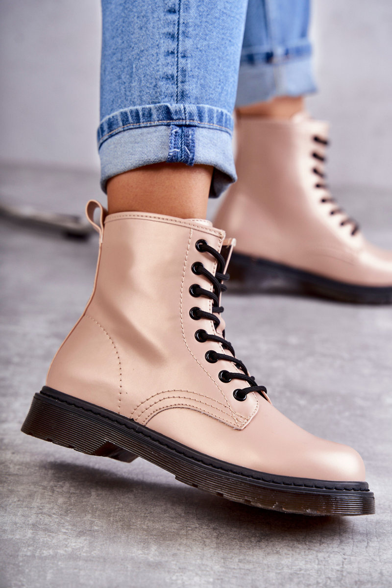 Dámské kotníkové boty jsou vyrobeno z plastu. Tento model má vyztuženou patu. Kozačky zavazované kulatými tkaničkami. Nasazené na nízké platformě a plochém podpatku z gumového materiálu. Jsou protiskluzové. Uvnitř mají izolaci v podobě přikrývky na obuv. Podívejte se také na další modely bot! Při výběru velikosti se řiďte tabulkou velikostí.
