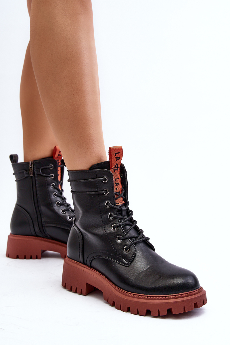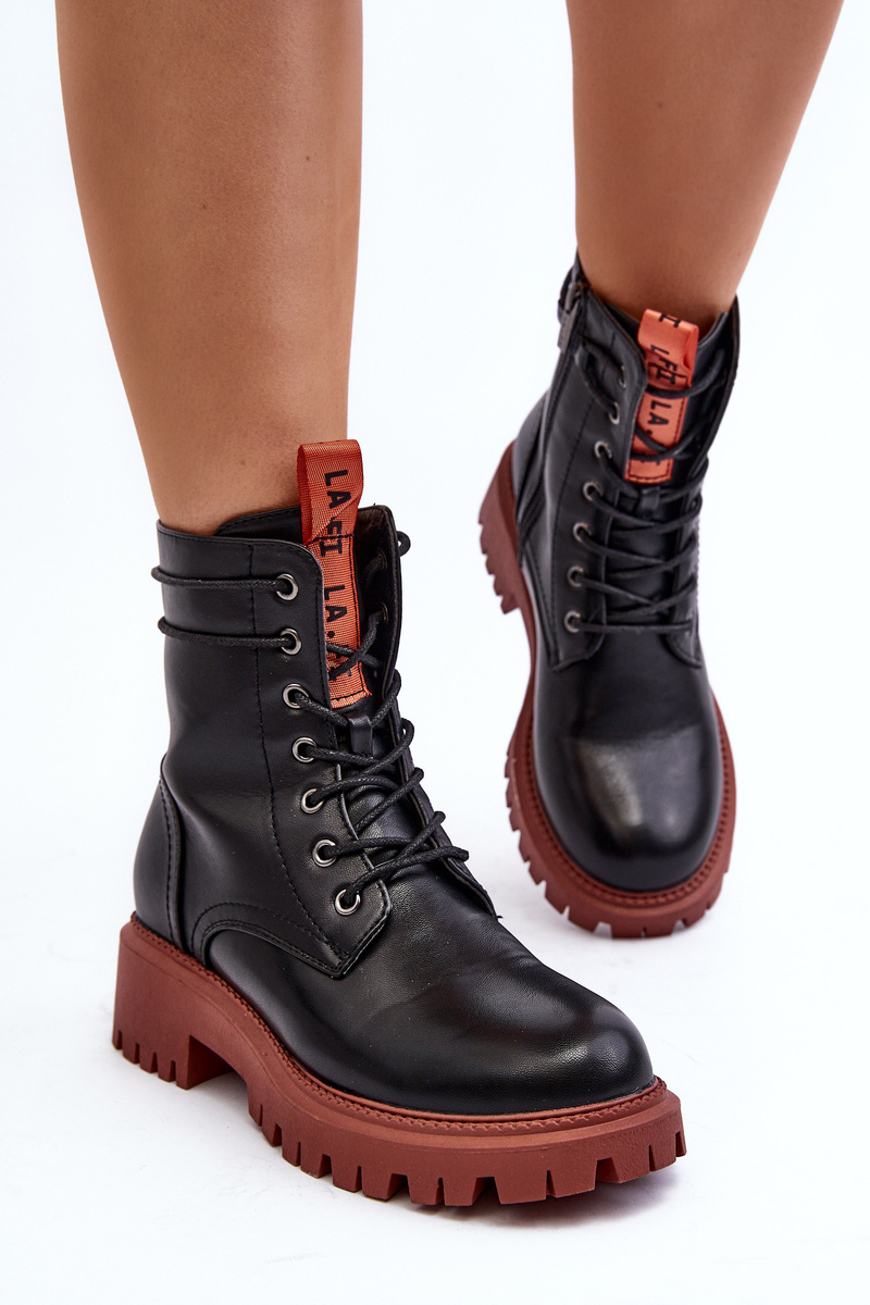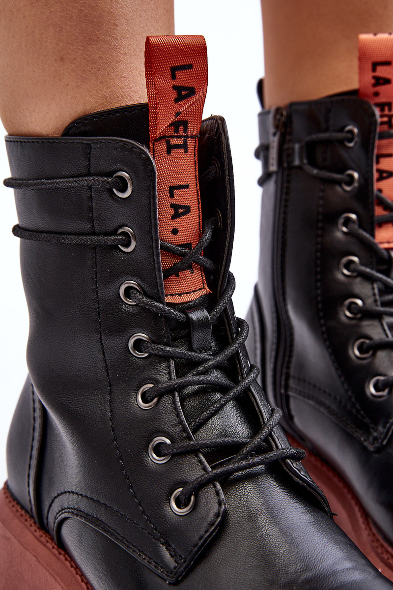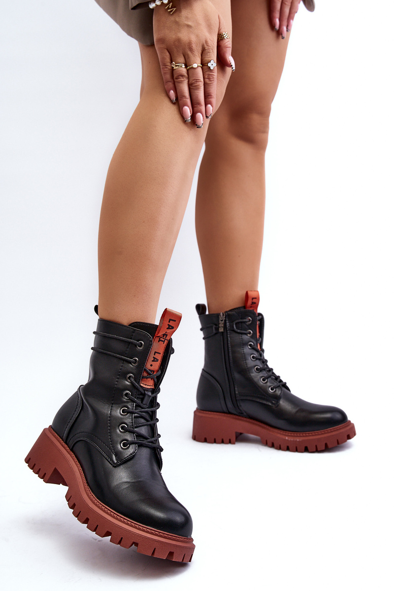 Dámské boty vyrobené z ekologické kůže. Umístěné na ploché podrážce a platformě s podrážkou z plátna. Mají klasické šněrování a zip na boční části svršku, který usnadňuje obouvání. Navíc je patník zpevněný. Vnitřek je vyložený jemným kožíškem. Při výběru velikosti se řiďte tabulkou velikostí.