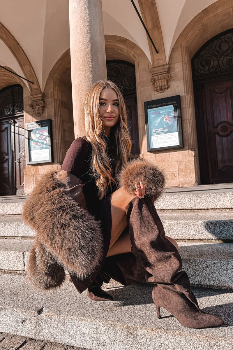 Dámské kozačky s vysokým shaftem sahajícím za koleno jsou elegantní a stylovou volbou na podzimně-zimní sezónu. Snadno se obouvají a jsou na tenkém podpatku, což nejenže dodává postavě lehkost, ale také jemně prodlužuje nohy a zvýrazňuje ženské tvary. Špičaté nosy přidávají rafinovaný akcent a kvalitní materiál zajišťuje odolnost a pohodlí. Tyto kozačky se skvěle hodí jak ke elegantním šatům a sukním, tak i k volnějších módním outfitem, čímž se stanou výrazným doplňkem zimního stylu. Při výběru velikosti prosíme podle tabulky velikostí. Při výběru velikosti se řiďte tabulkou velikostí.