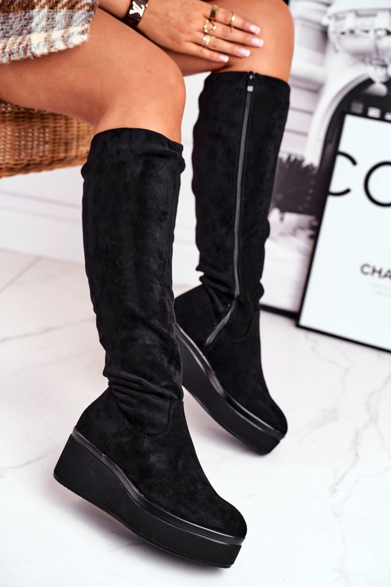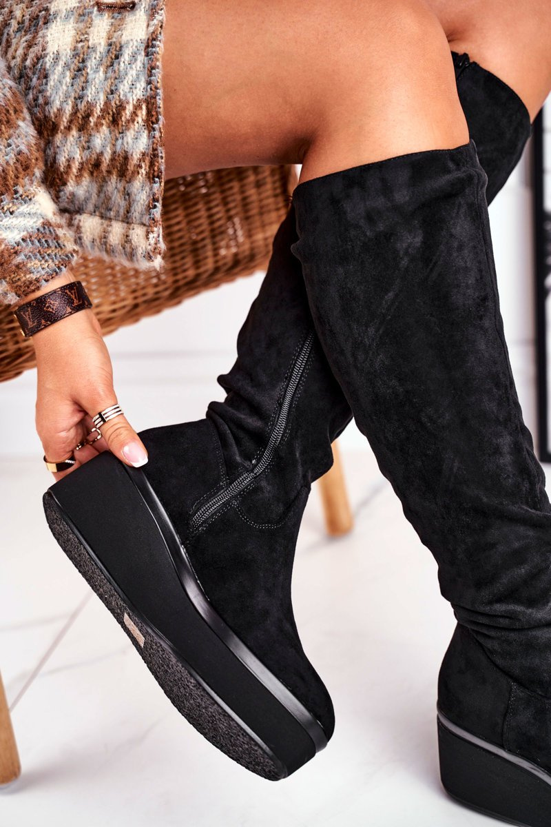 S takovými botami nebude vaše zimní oblečení určitě nuda! Stylové boty po kolena s teplým interiérem potaženým přikrývkou. Pohodlné navlékání díky zipu na boku. Vysoká platforma 4 cm v kombinaci s klínem je výstřel za 10! Tyto boty neuvěřitelně zvednou vaši postavu a zdůrazní její každou hodnotu. Při výběru velikosti použijte tabulku velikostí.