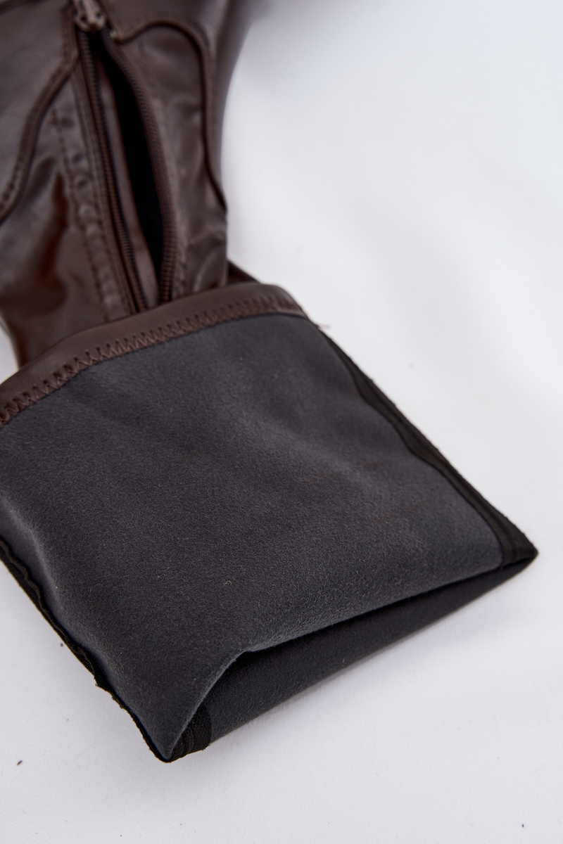 Dámské kozačky na masivním podpatku a platformě s nazouváním hnědé Florinne