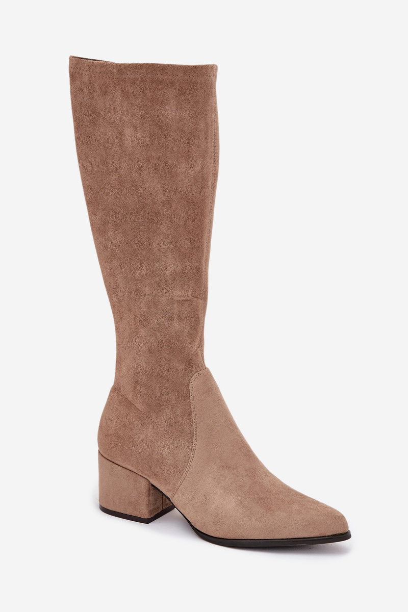 Dámské kozačky na nízkém podpatku ekologická semiš Sergio Leone KZ212 béžové
