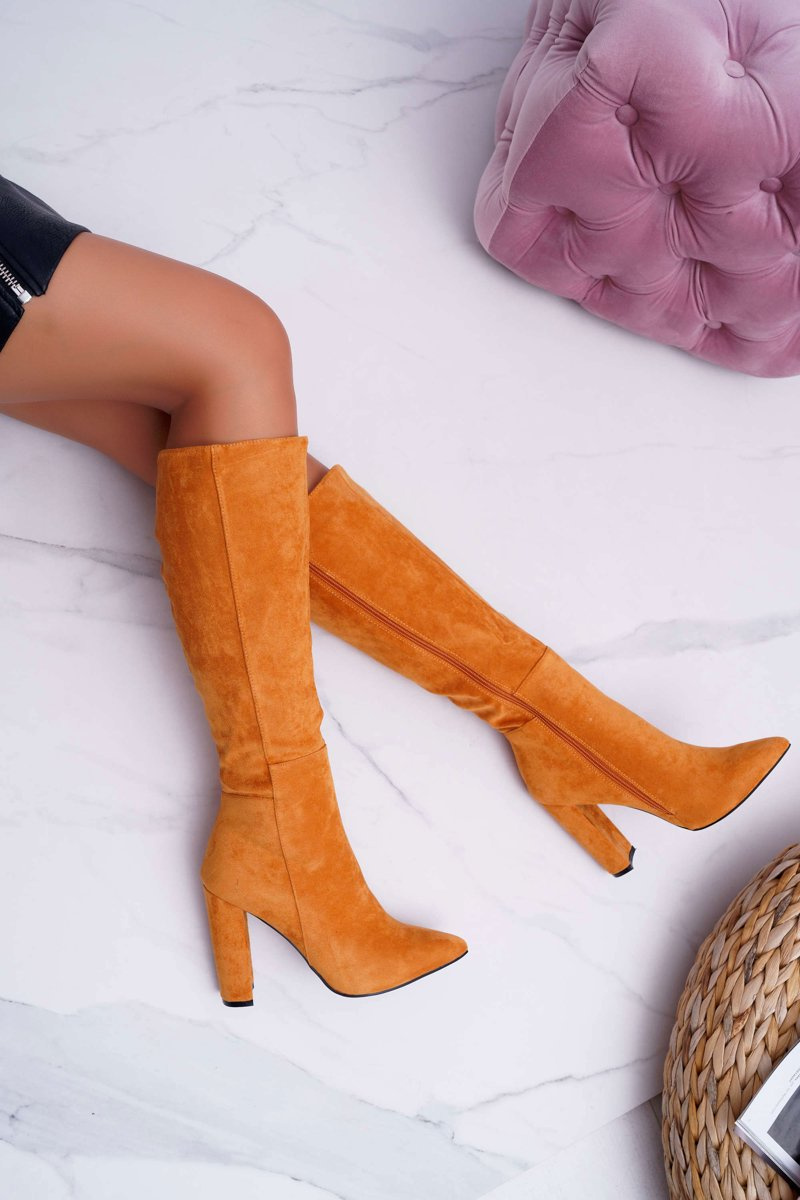 Módní kozačky na podpatku vyrobené z eko-semiše. Jemný podpatek prodlouží a zeštíhlí vaši postavu. Výška pod kolena Při výběru si zkontrolujte tabulku velikostí.