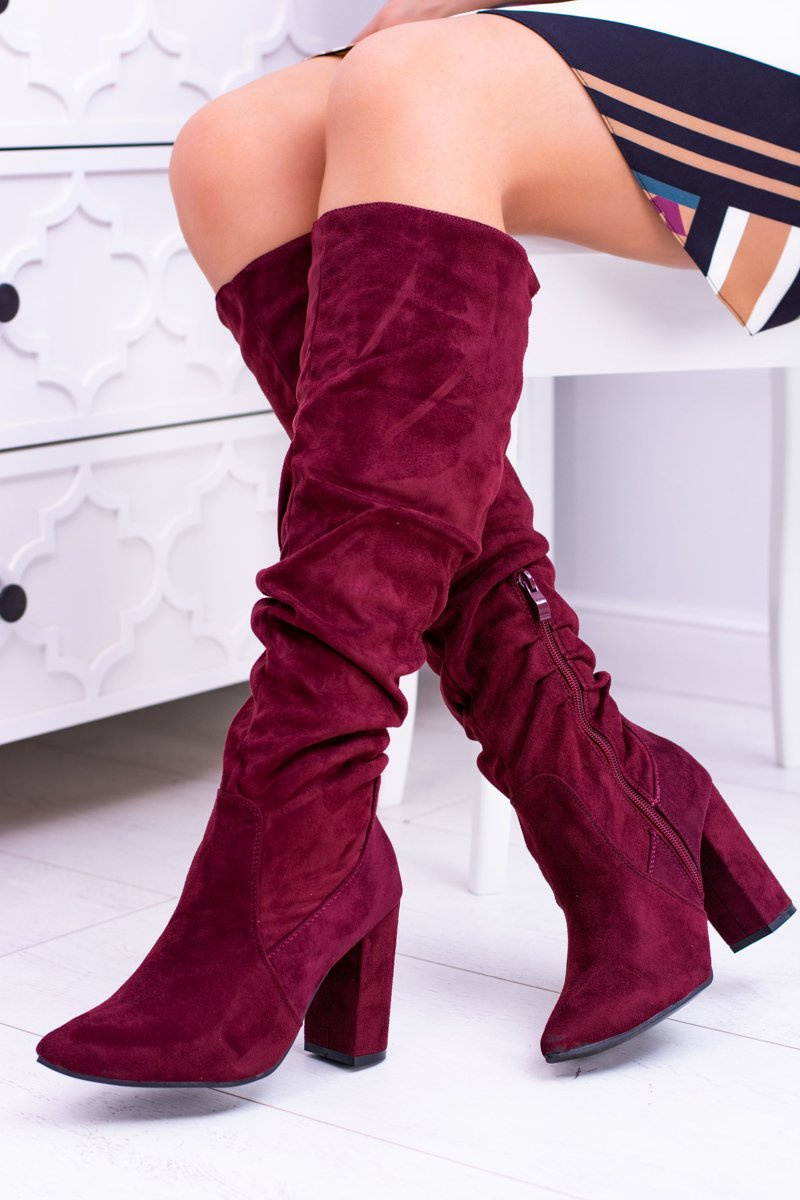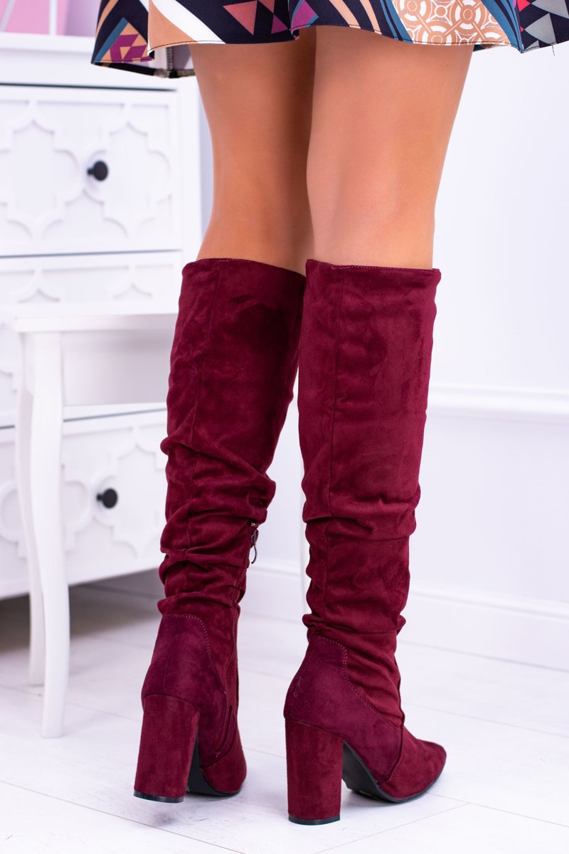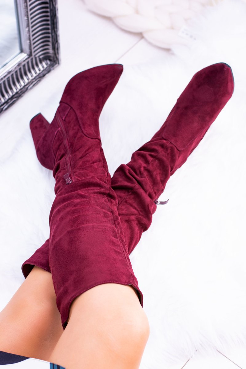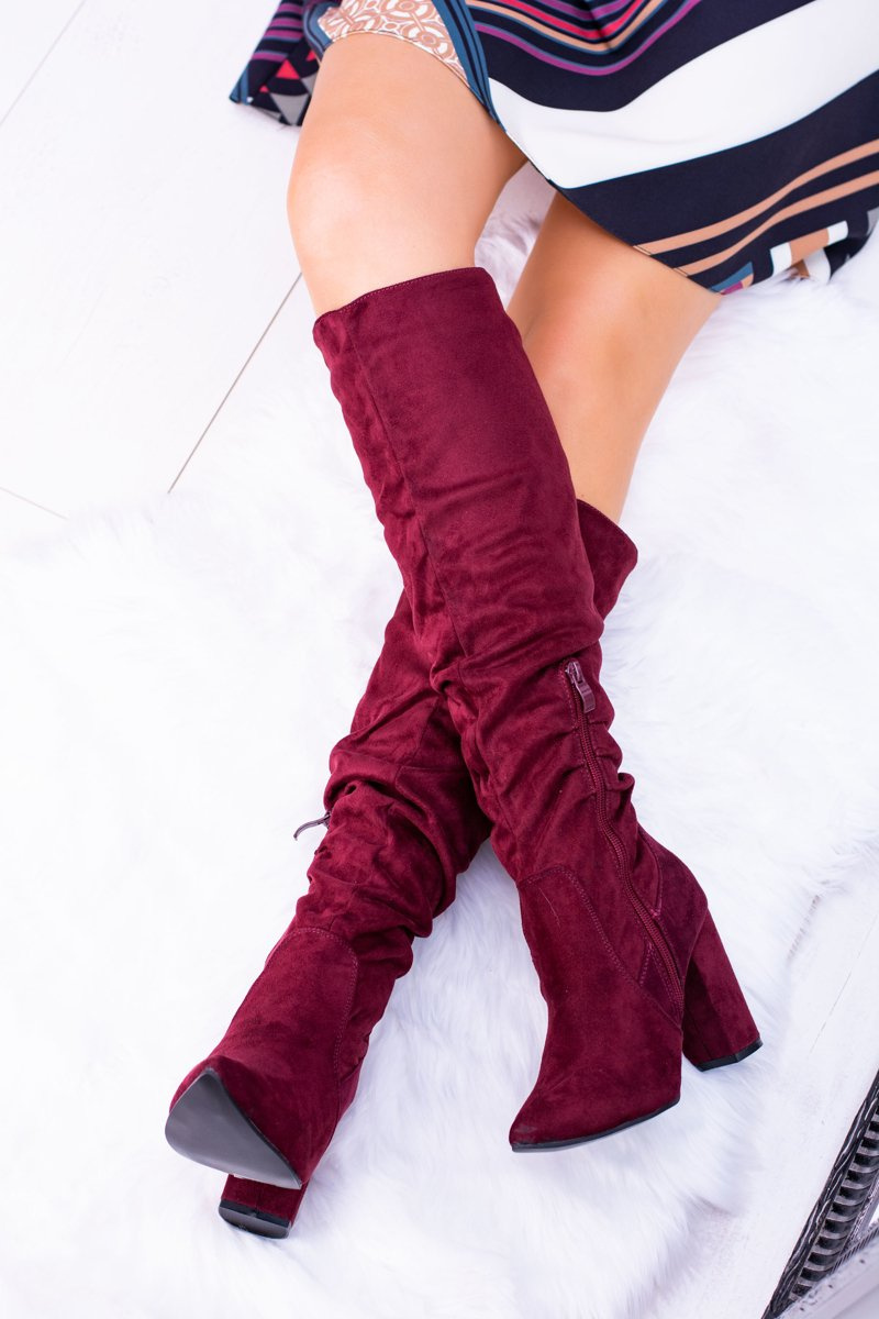 Dámské Kozačky Na Podpatku Semišové Burgundské Nightcall