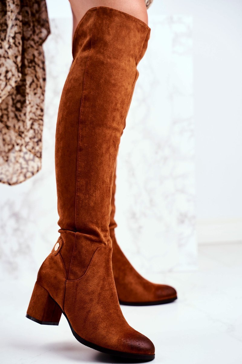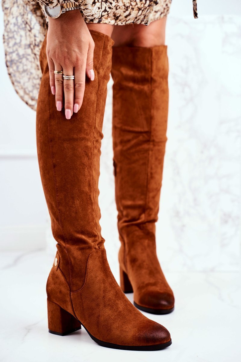 Dámské Kozačky Na Podpatku Semišové Camel Torgos
