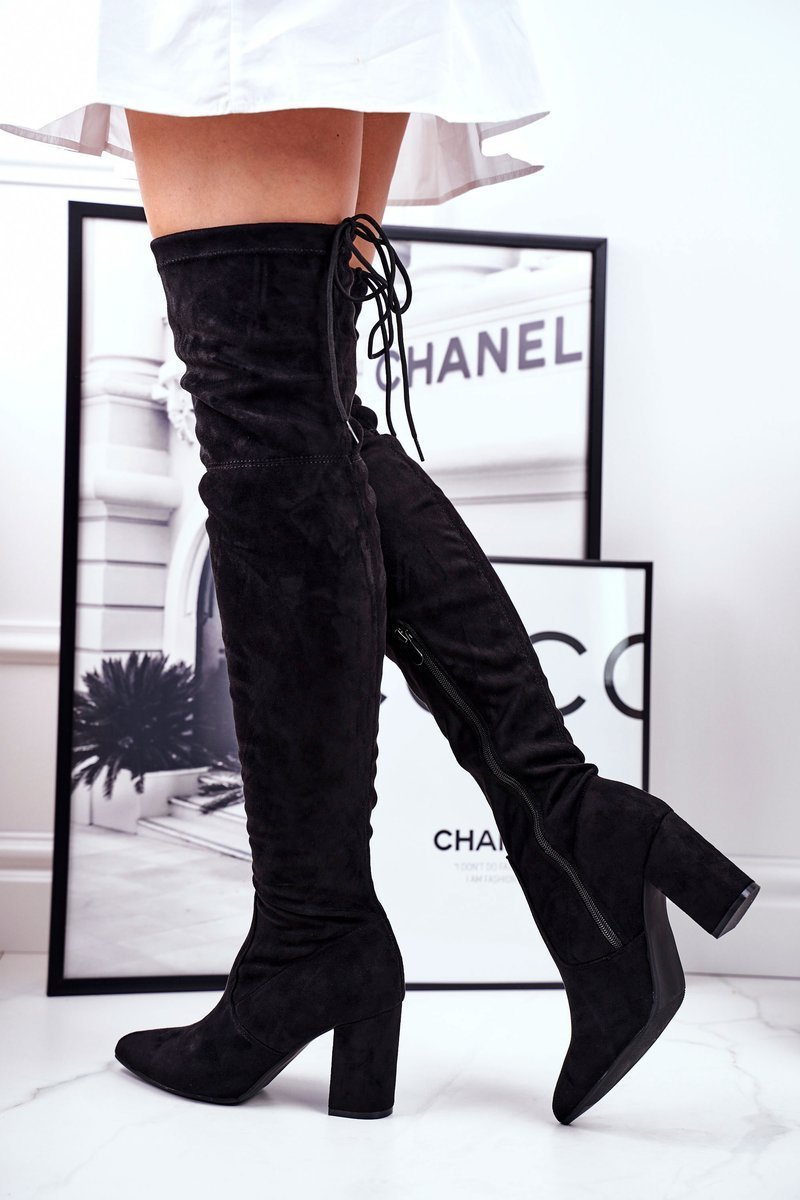 Dámské Kozačky Na Podpatku Semišové Černé Milwa
