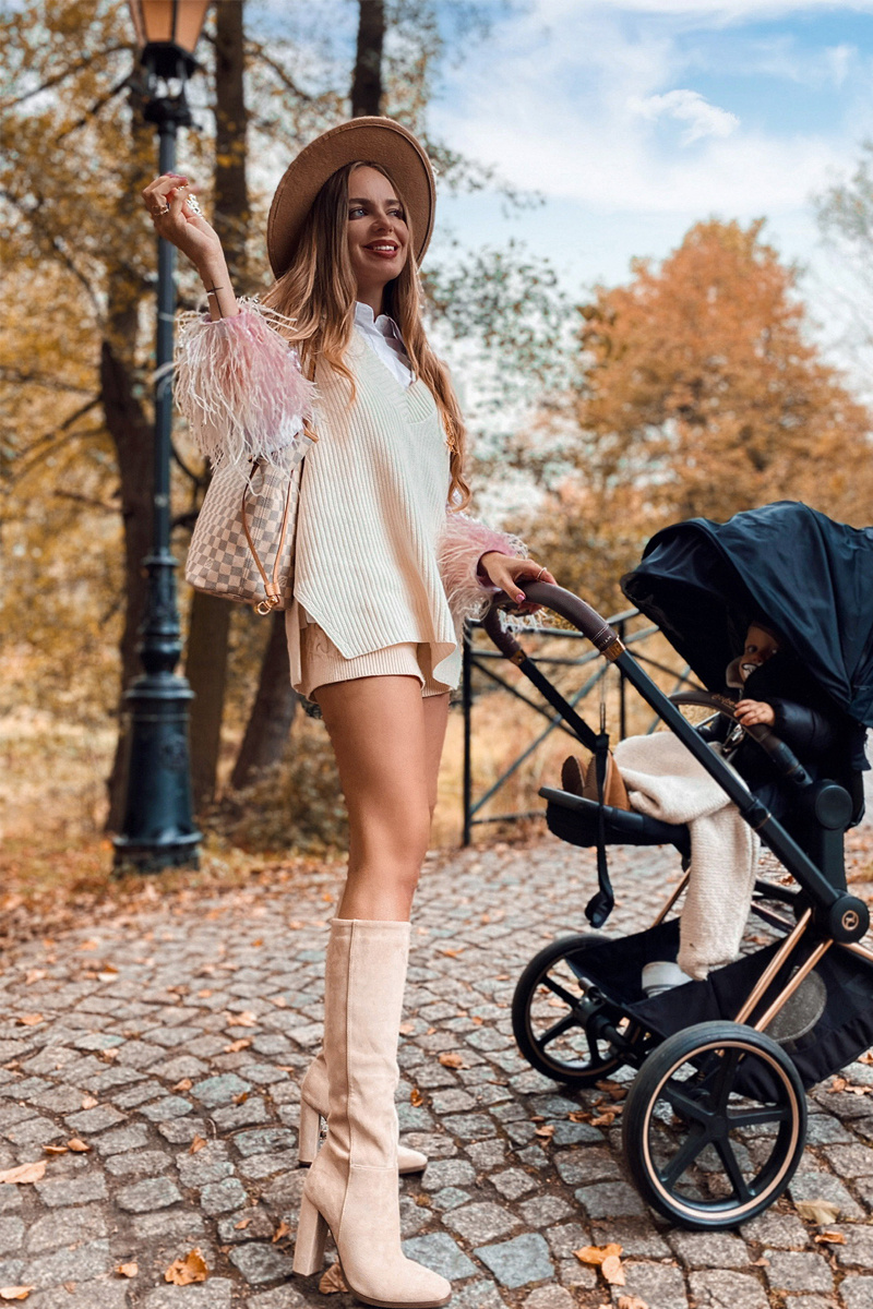 Dámské Kozačky Na Podpatku Teplé Béžové Finner