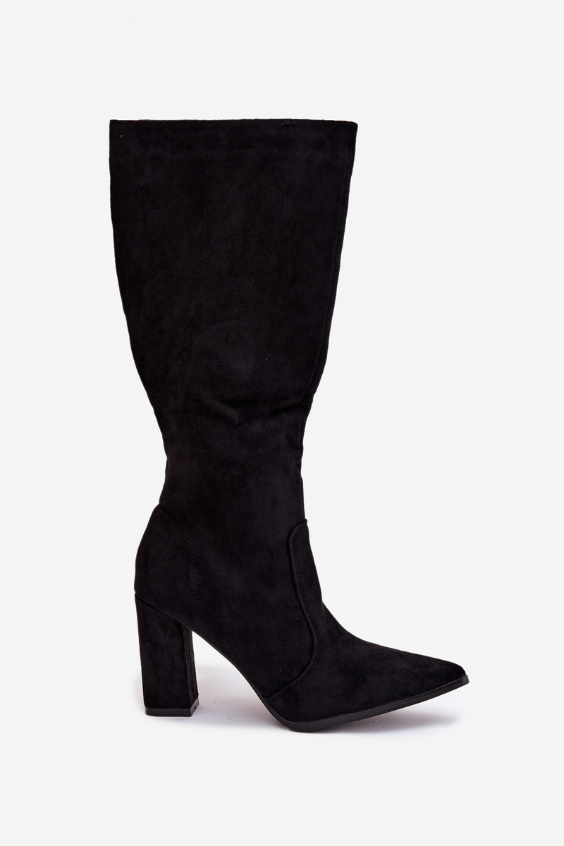 Dámské kozačky na podpatku z eko semiše vyhřívané černé Narille