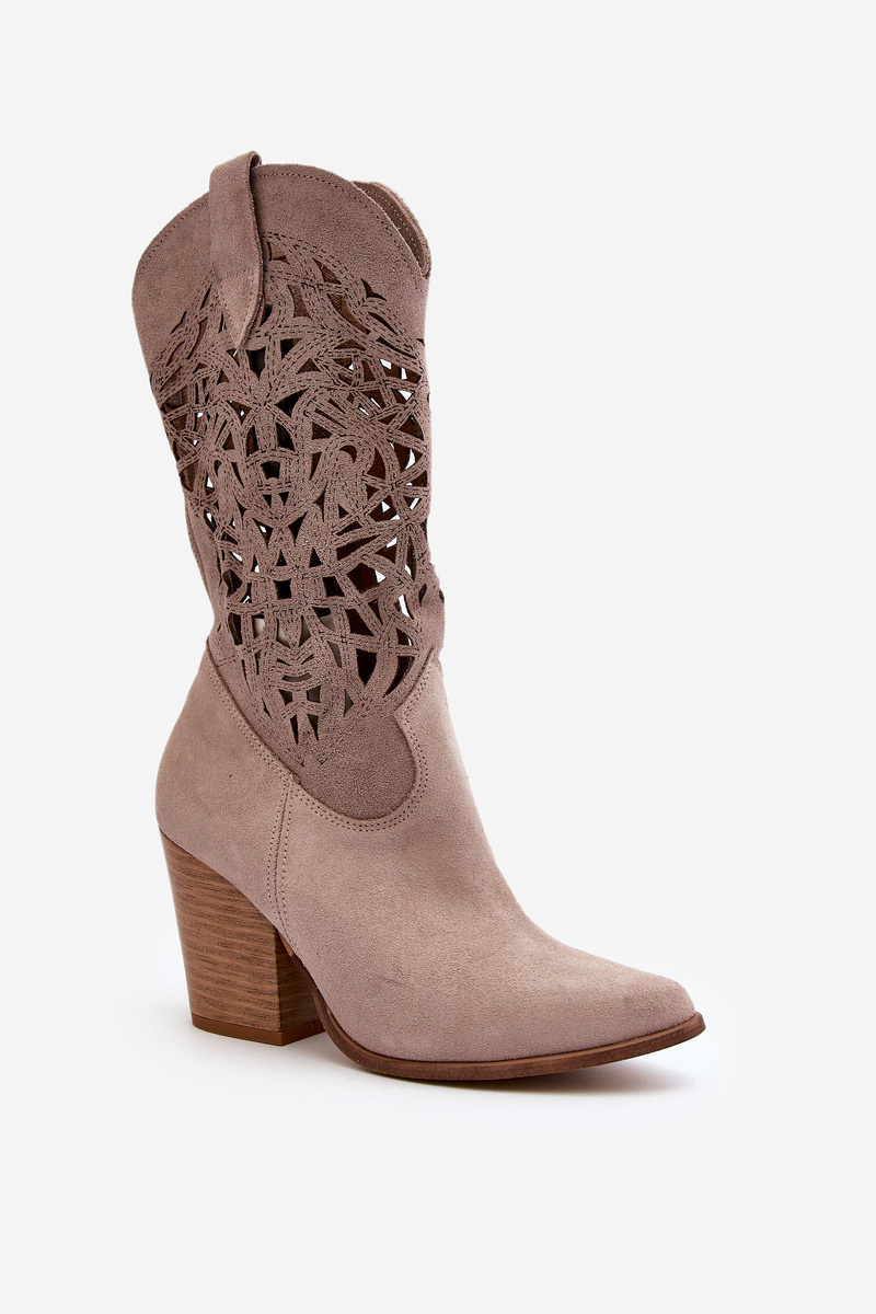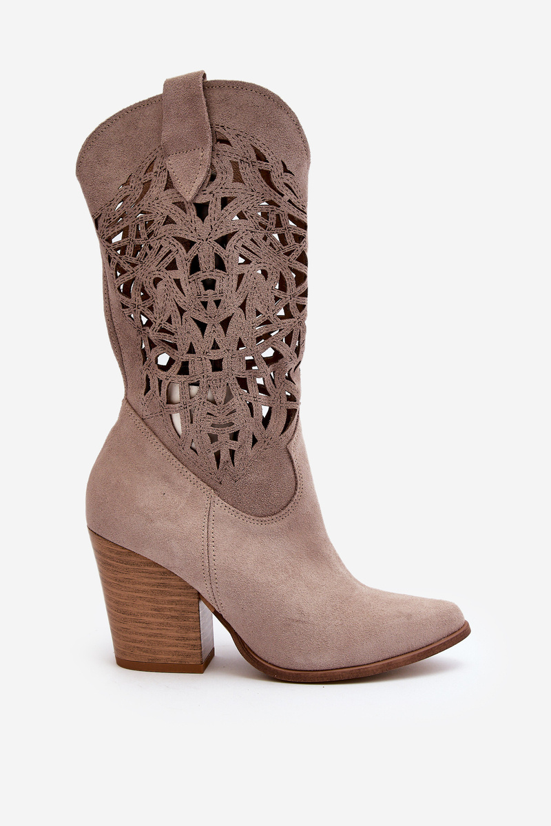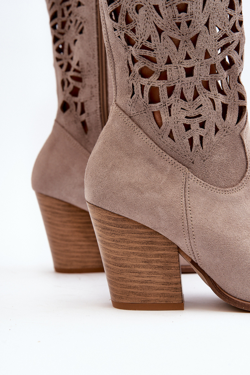 Dámské kozačky na podpatku z semiše béžové Zazoo 3166/P