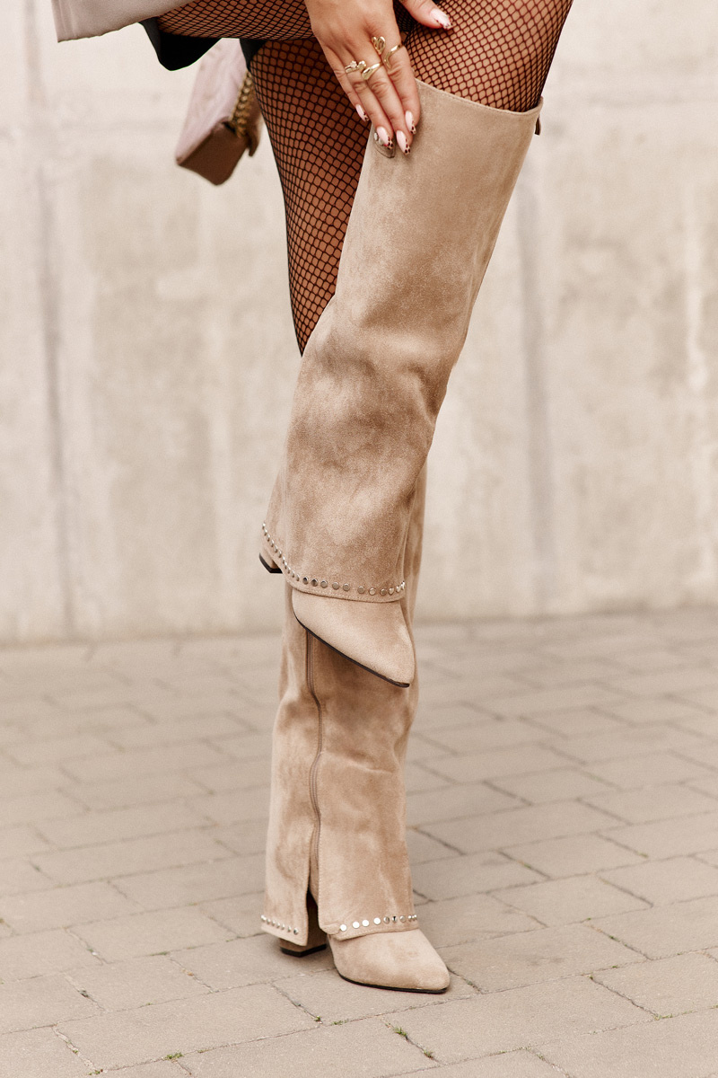 Dámské Kozačky S Ohnutým Svrškem Na Podpatku Béžové Kaithena