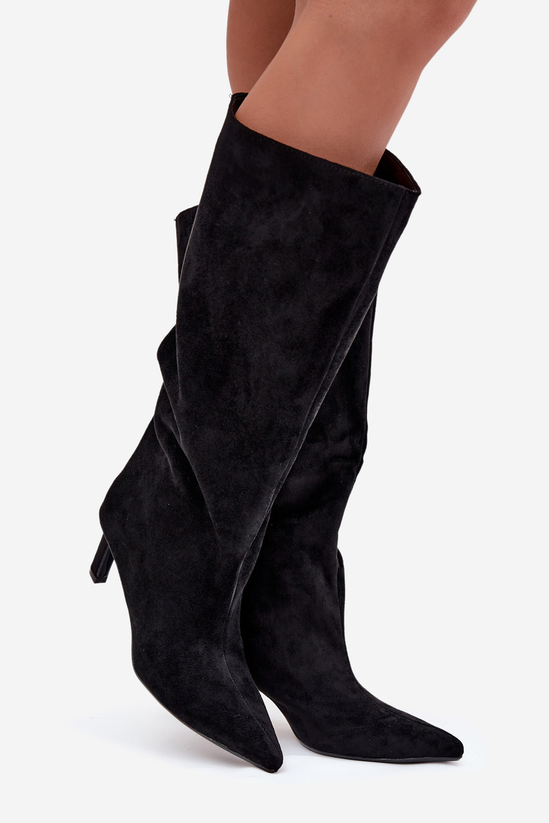 Dámské kozačky z eko semiše nazouvací na jehle černé Phelin