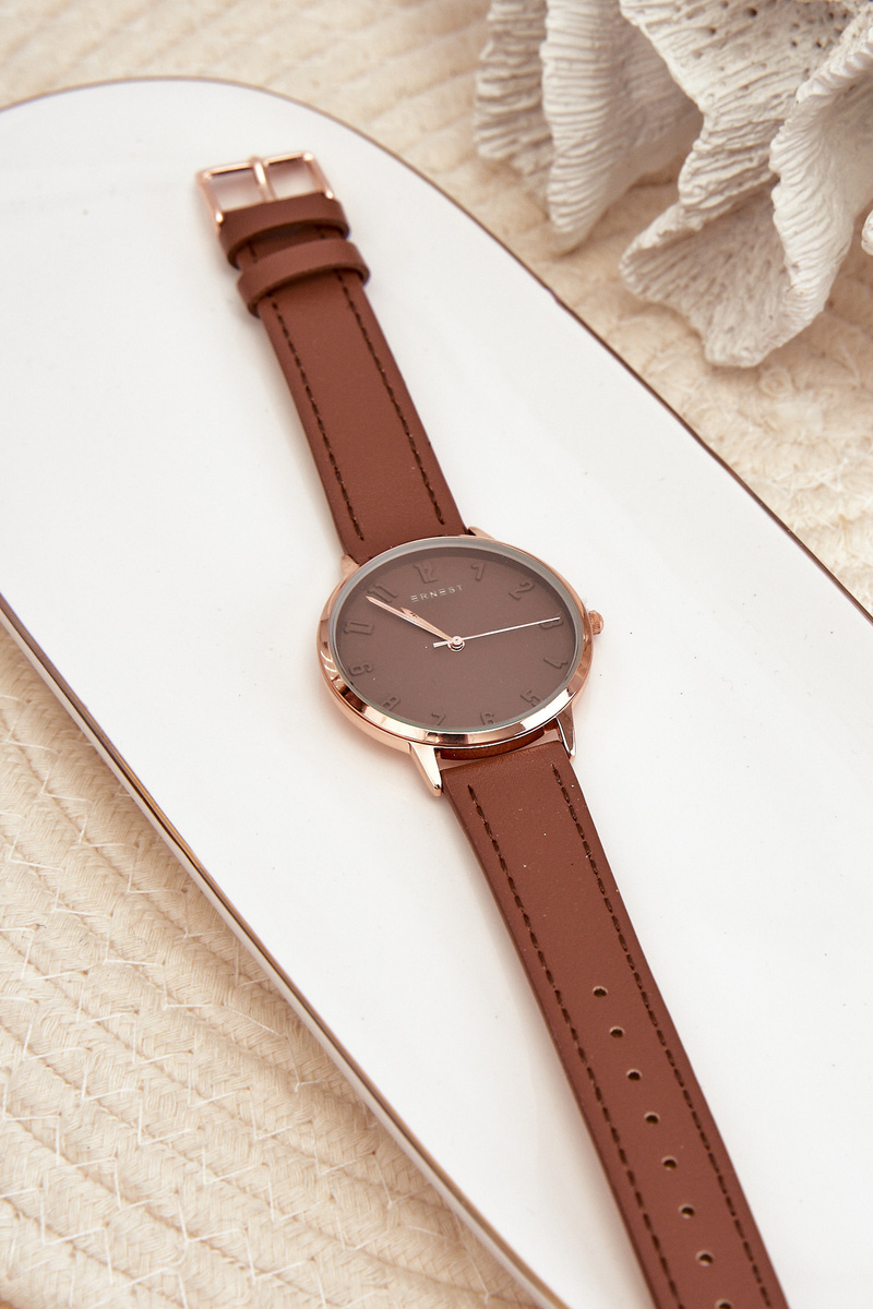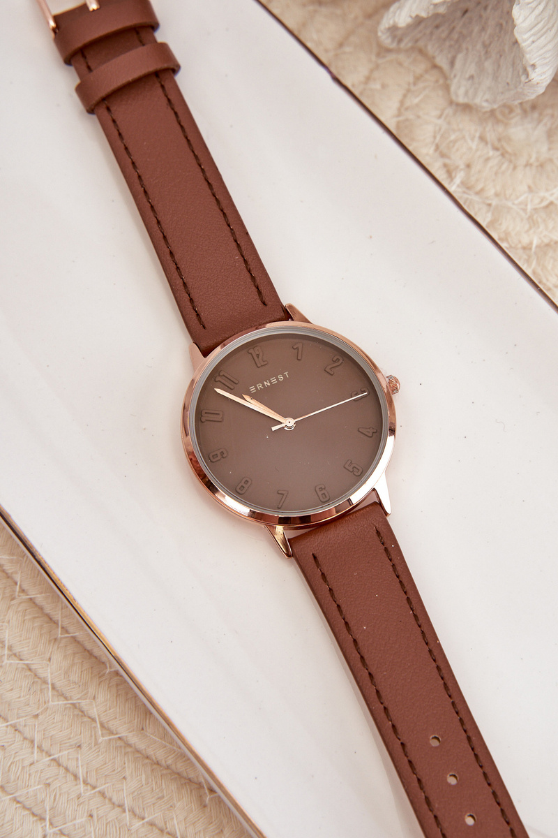 Dámské kožené analogové hodinky bez niklu Ernest hnědý E94195