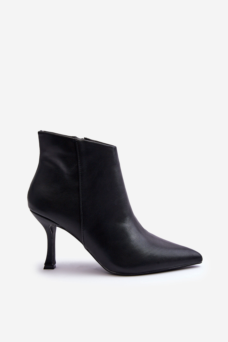 Tyto elegantní dámské boty jsou vyrobeny z ekologické kůže. Model je na podpatku ve tvaru špičky se špičatou špičkou, která dokonale prodlouží nohy. Boty jsou uzavřeny na boku na zip. Špička bot je v těchto botách zesílena. Tento model se skvěle hodí do mnoha stylů, například do šatů, sukní nebo kalhot. Tyto boty by měly být nezbytnou součástí vaší skříně! Při výběru velikosti se řiďte tabulkou velikostí.