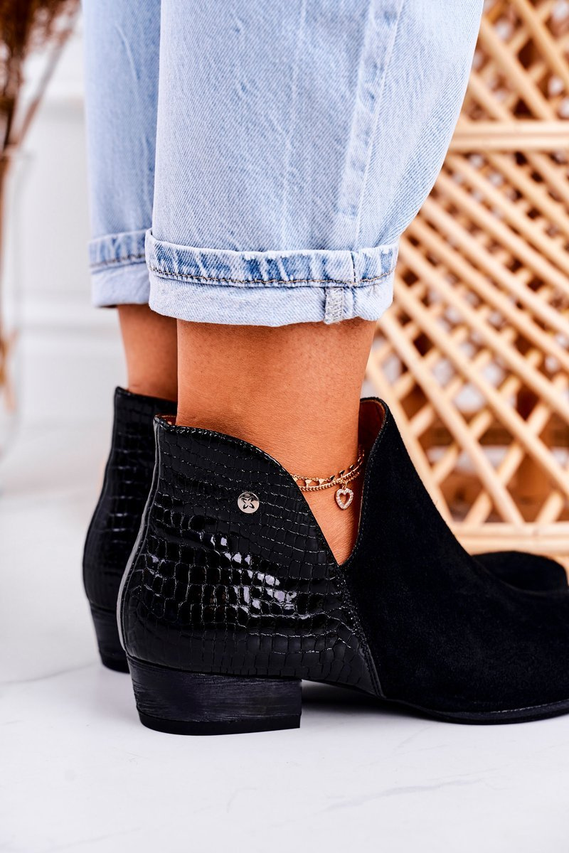 Dámské Kožené Boty Maciejka Lakovane Černý Zvířecí Vzor 04091-72