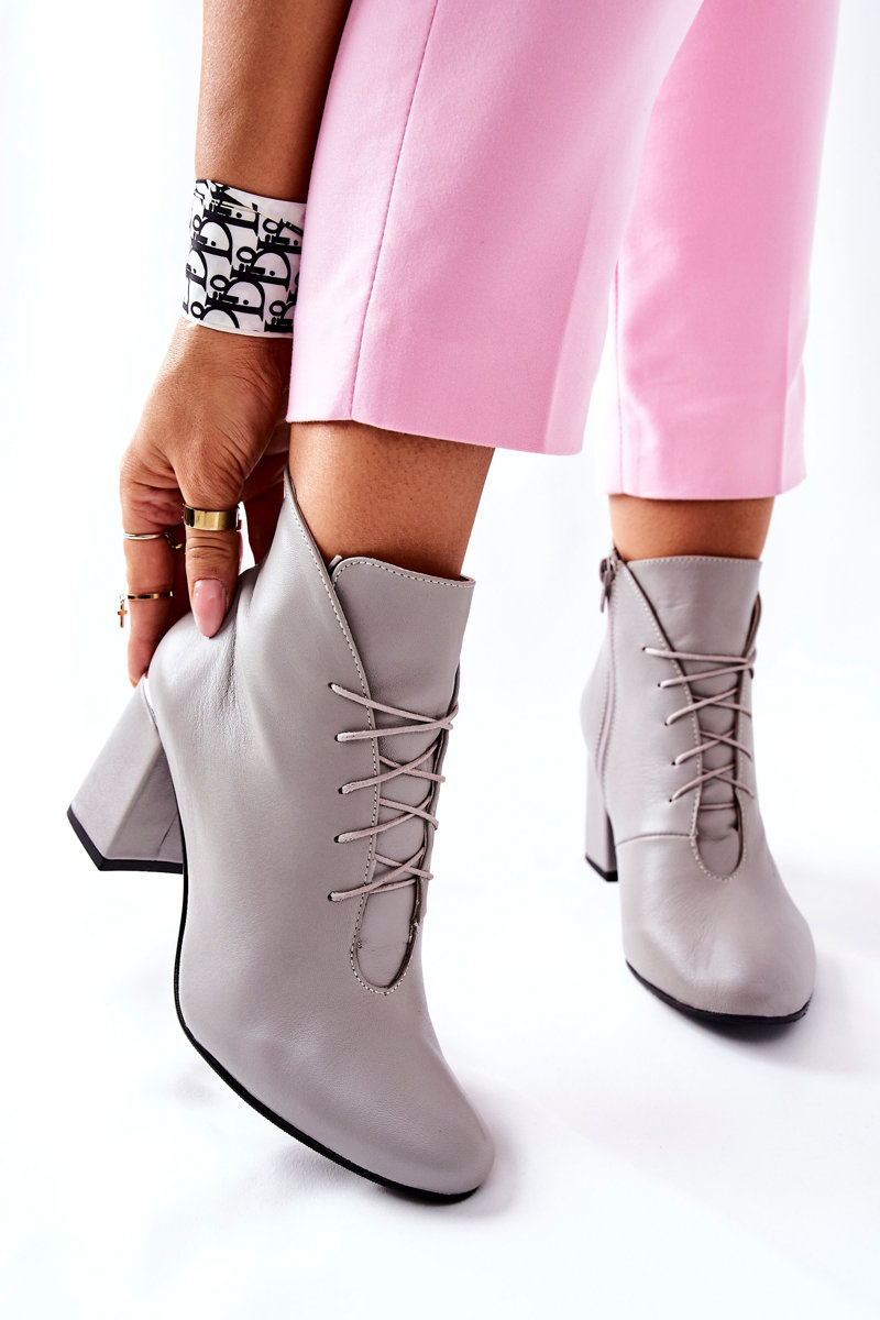 Dámské Kožené Boty Na Podpatku Šedé Carrice