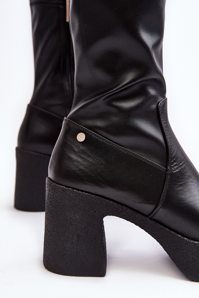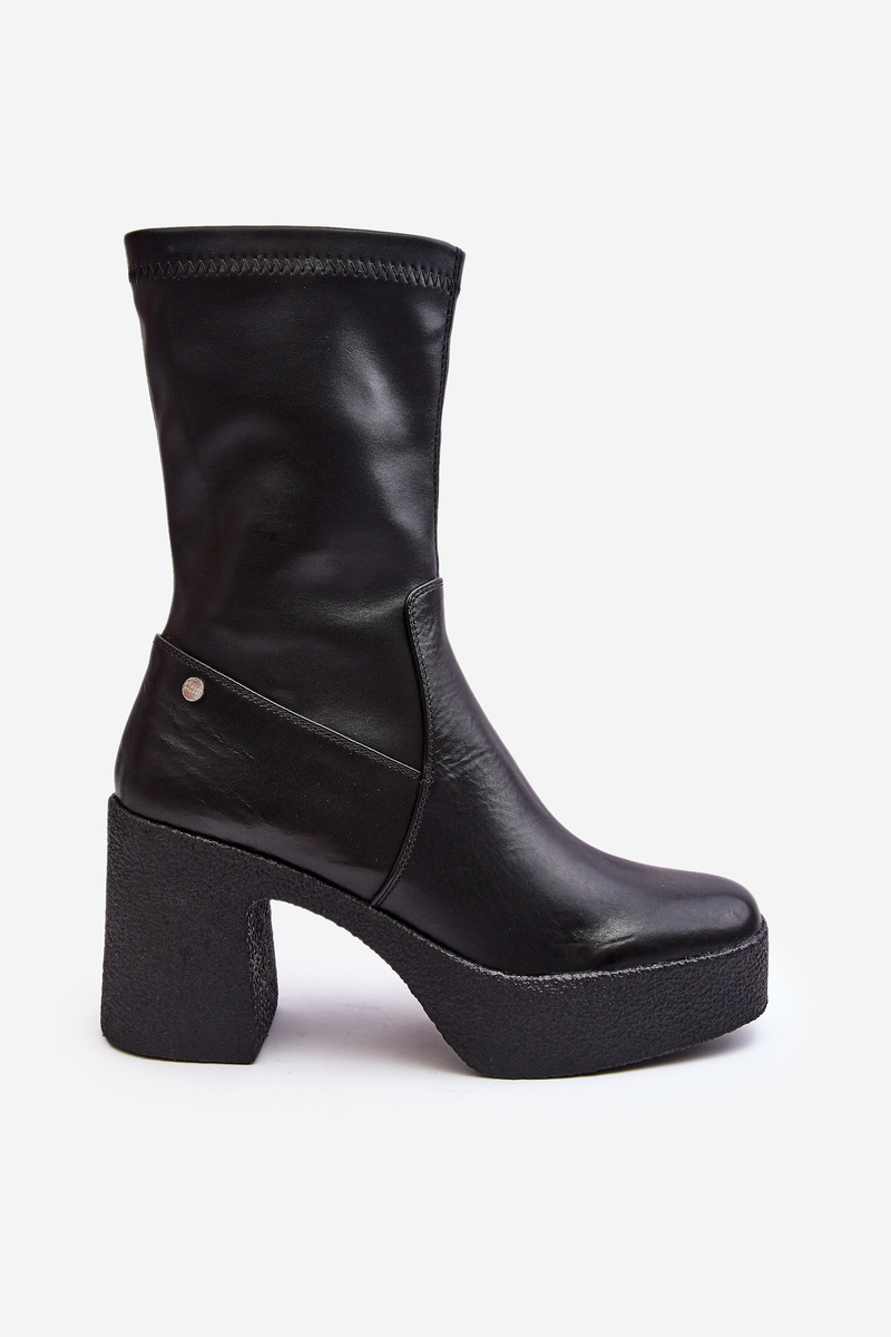 Boty s hrubou podrážkou a podpatek ve tvaru sloupu. Vyrobeno z kombinace přírodní kůže a ekologické kůže. Zapínání na zip po straně. Vnitřek izolovaný obuvnickou dekou na výšce chodidla. Tyto boty budou skvěle fungovat v podzimních stylizacích. Při výběru velikosti se řiďte tabulkou velikostí.