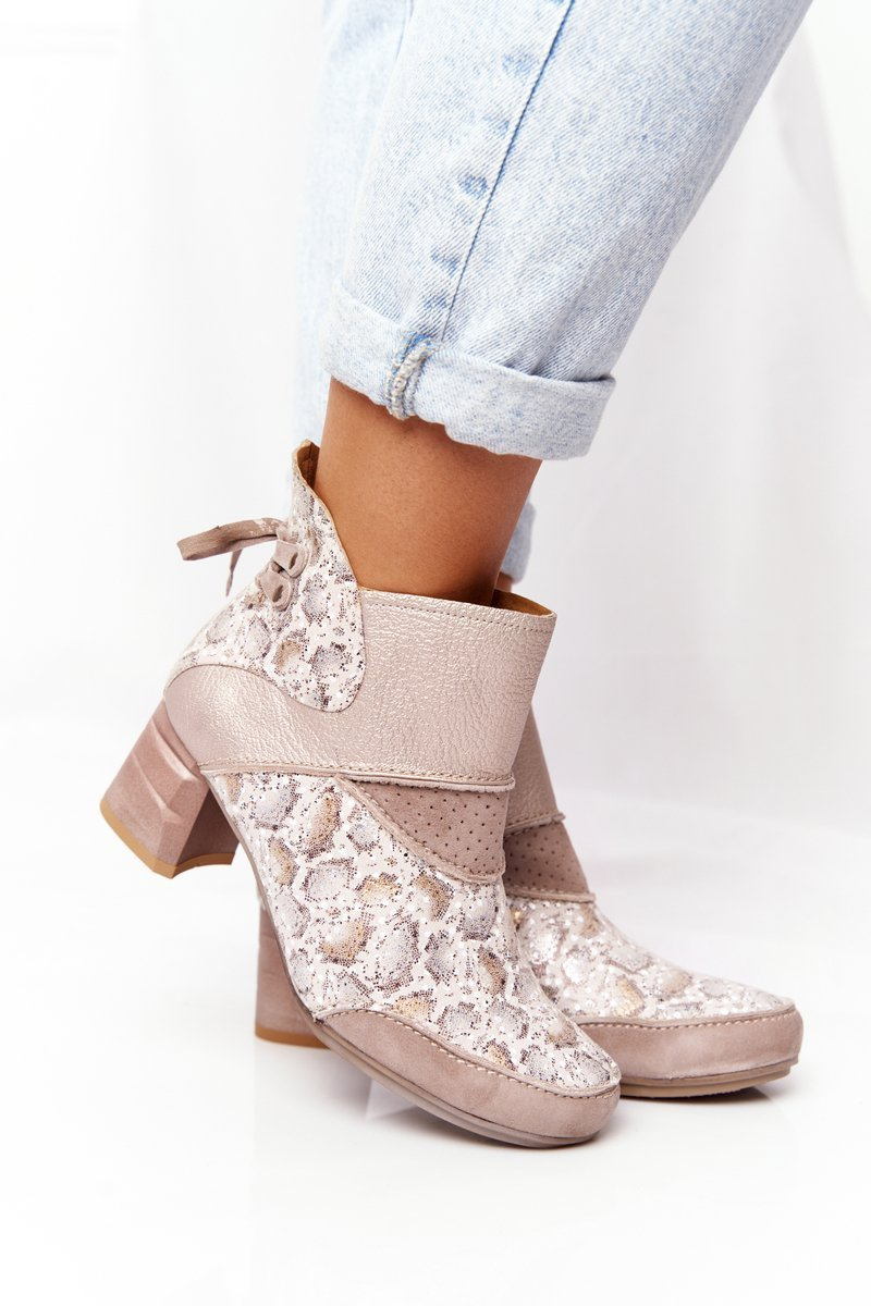 Dámské Kožené Boty Na Sloupku Maciejka Zlaté Béžové 03963-20